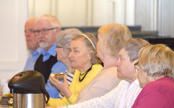 Månadsmötet gästades av Sångfåglarna med Eivor Pettersson som dirigent, Morgan Tolsén på keybord samt Christer Idering på bas. Dem tolkade Jules Sylvin med många kända låtar. Det blev även lite allsång. Prisbordet bestod av korgen och hembakat bröd, vann själv en påse vaniljbullar jättegoda. Mötet avslutades som vanligt med gymnastik av två pigga pensionärer.