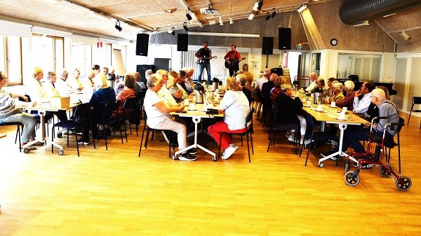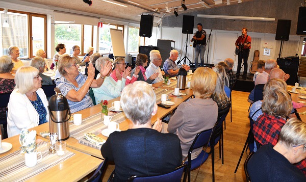 På månadsmötet underhöll Håkan & Micke dom var duktiga att spela och sjunga det var många olika låtar,om ni kollar en av bilderna kan ni se hur mötesdeltagarna reagerade på deras låtar skulle ha varit film . Det var c:a 50 mötesdeltagare.