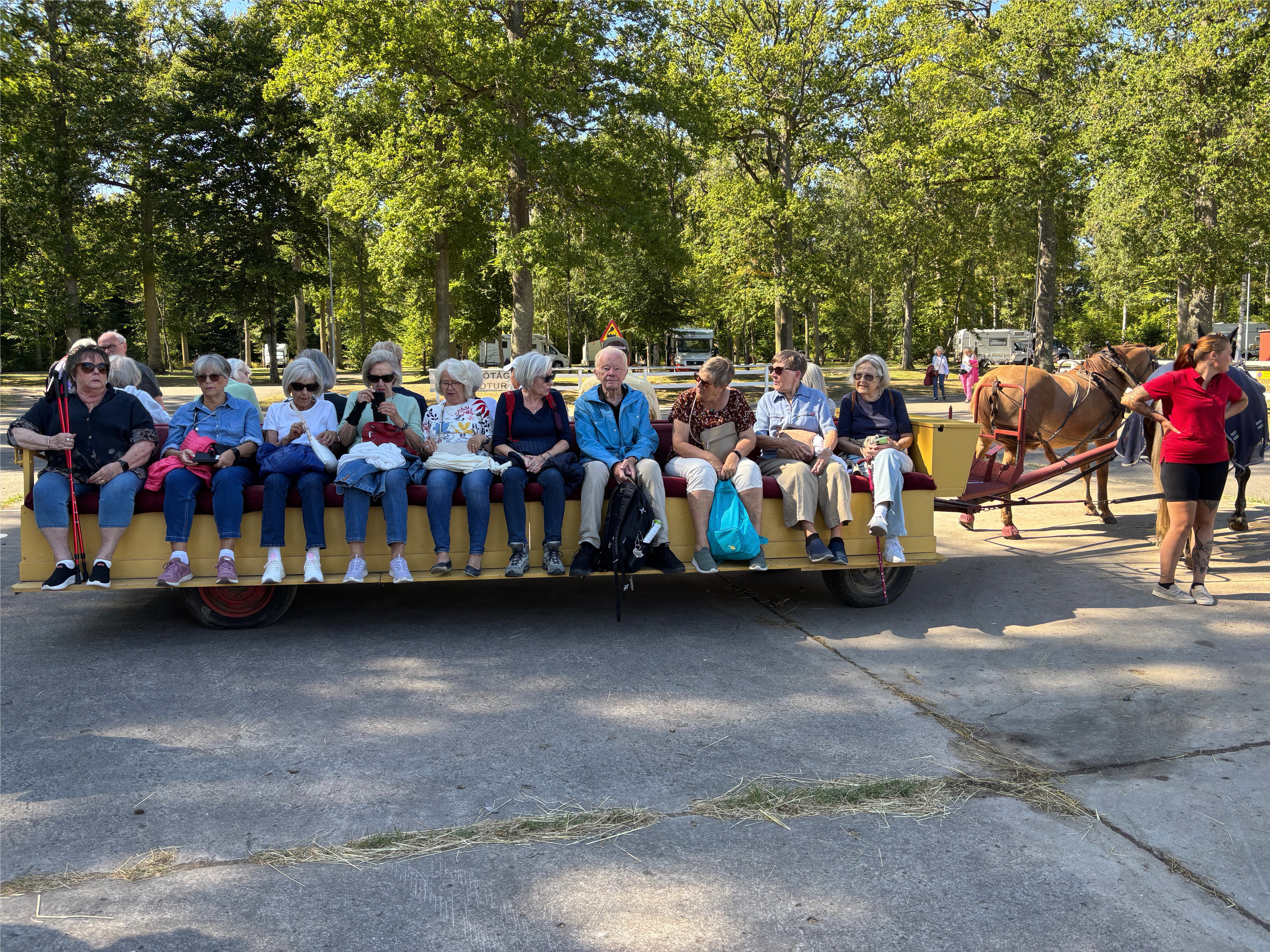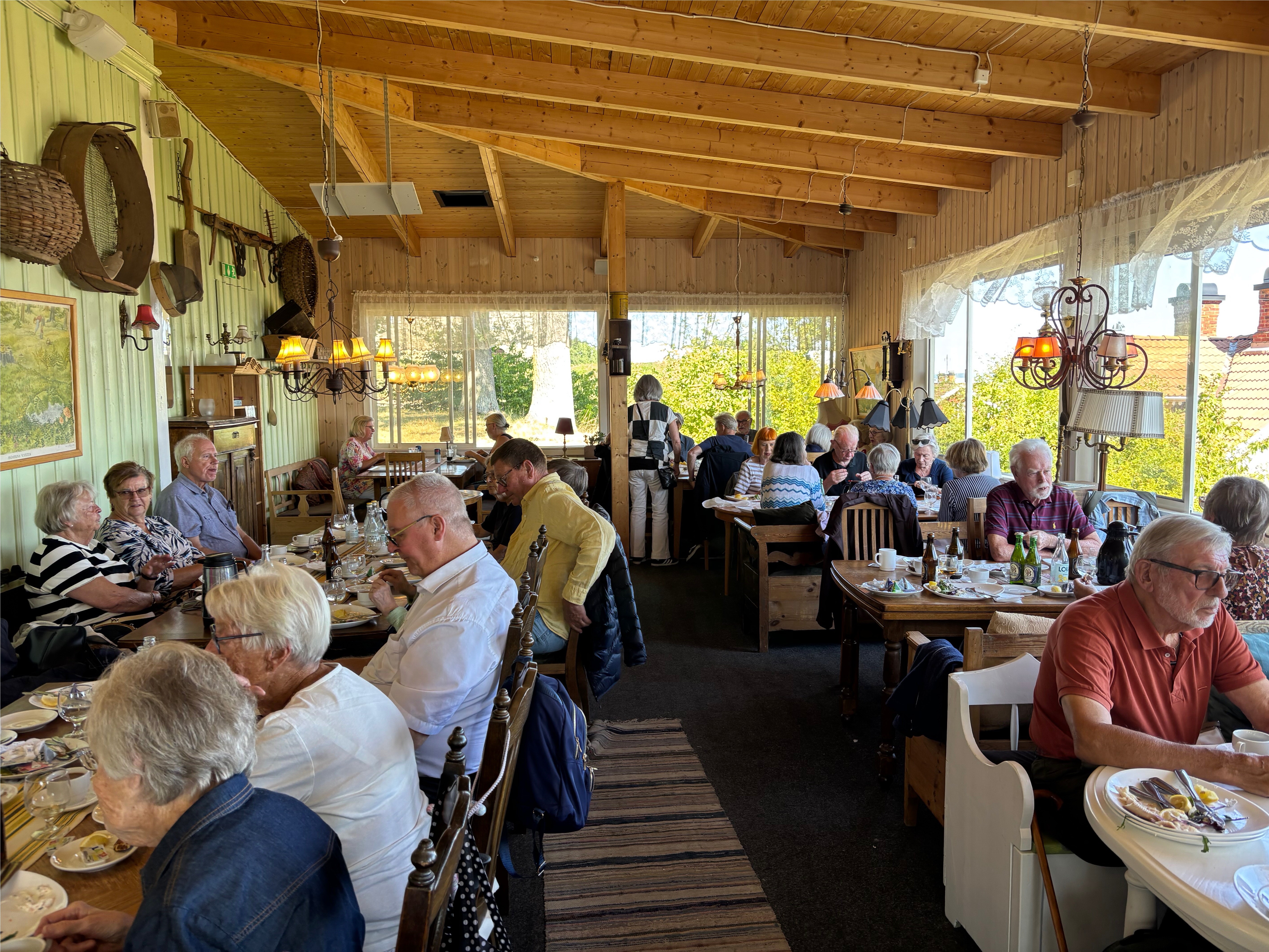 Måndag bussresa och färjetur till Visingsö med lunch, remmalag och strålande sol. Vi sov över på Gyllene Uttern , alla fick rum med Vettern-utsikt.