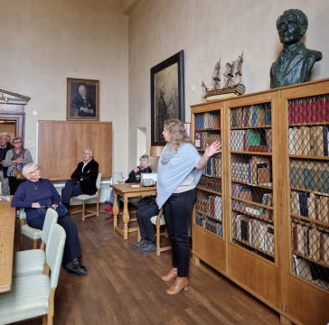 De flesta av våra resenärer klättrade upp för trapporna till stora rådsalen och sedan vidare upp till tornrummet. Sigtunastiftelsen uppmärksammades för några år sedan genom boken och filmen ”Bränn alla mina brev” om paret Stolpes tid på stiftelsen. Det berättades att Sven Stolpe satt och skrev högst upp i tornrummet. Ett litet instängt vindsrum, med utsikt i tre riktningar. Precis utanför fanns en intressant dörr till Eftertankens rum. Men gick han även in i det mystiska rummet?
