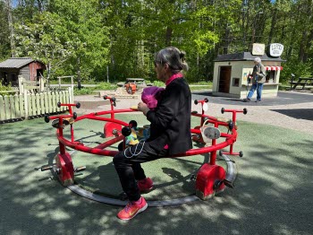 Resan startade med buss vid Gullmarsplan mot Älvsjö, där vi bytte buss mot Fruängen. Vi gick av vid Långsjöns östra del och sedan började vår vandring runt sjön. Det var många fina och ståtliga villor, och många hade sina tomter ända ner till vattnet. Vi stannade till vid en jättefin lekplats, där hågade barn kunde stå i en kiosk, meka med bilen eller åka karusell. Kanske inte något för oss seniorer, men kul att se.