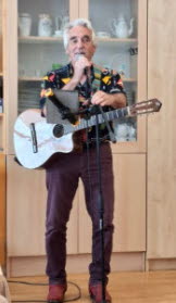 Anders Forsslund underhöll oss sedan med sång och musik. Han har sysslat med musik hela livet. Började med att han fick en kontrabas redan vid 14 års ålder. Han fick även ett dragspel, men det fick ligga på hyllan så länge. Han har varit musiklärare och spelat i olika konstellationer, varit medlem i t ex Fria Pro, the Mascots (i 6 år) och numera i den s k Svenska Lyxorkestern. Men han spelar och uppträder själv också. Numera med gitarr och sång.