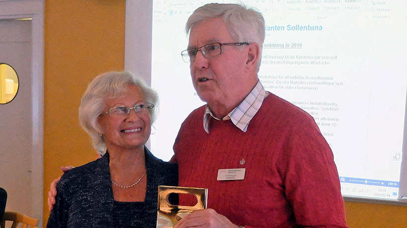 Årsmötet/månadsmötet avslutades efter det traditionsenliga lotteriet med att K-G Holmgren avtackade avgående styrelseledamöterna UllaBella Gylleus och Björn Zacke för deras insatser i föreningsarbetet. Björn har under sitt år i styrelsen drivit både kontakten med våra annonsörer och organiserat temamöten och andra evenemang med stor energi. Ulla-Bella honorerades för sin sjuåriga och omfattande insats i föreningsarbetet, framför allt i programkommittén.