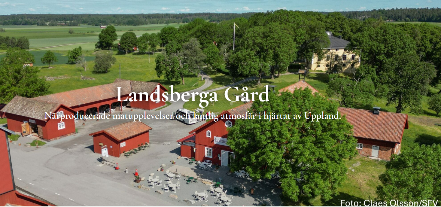 Vi börjar med att besöka Landsberga Gård, som är en anrik kungsgård med anor från 1200-talet. Här har familjen Sandqvist brukat jorden sedan 1888. Här serveras vårt förmiddagskaffe med smörgås och vi får höra ägarna berätta om gårdens historia och verksamheten idag.