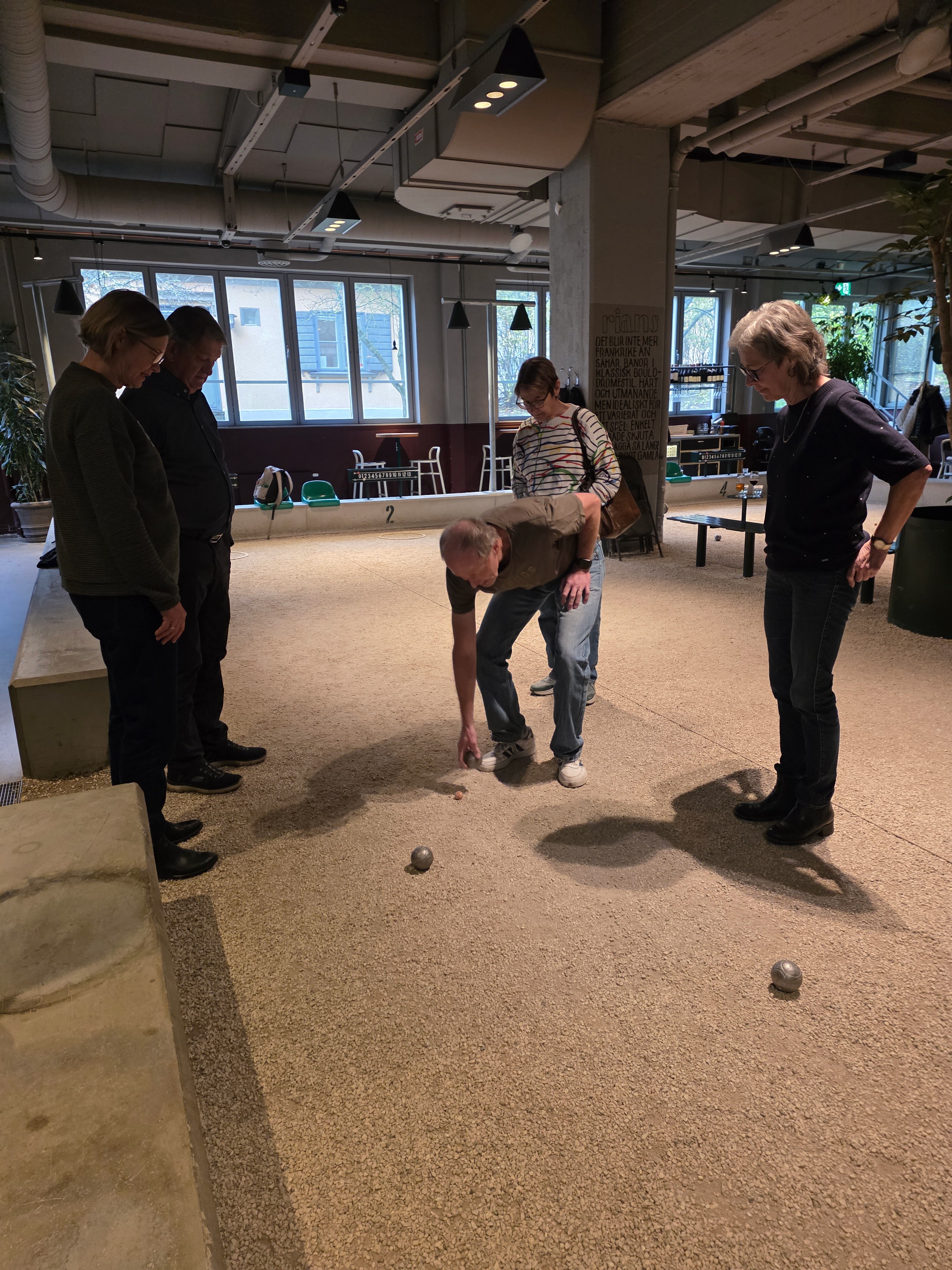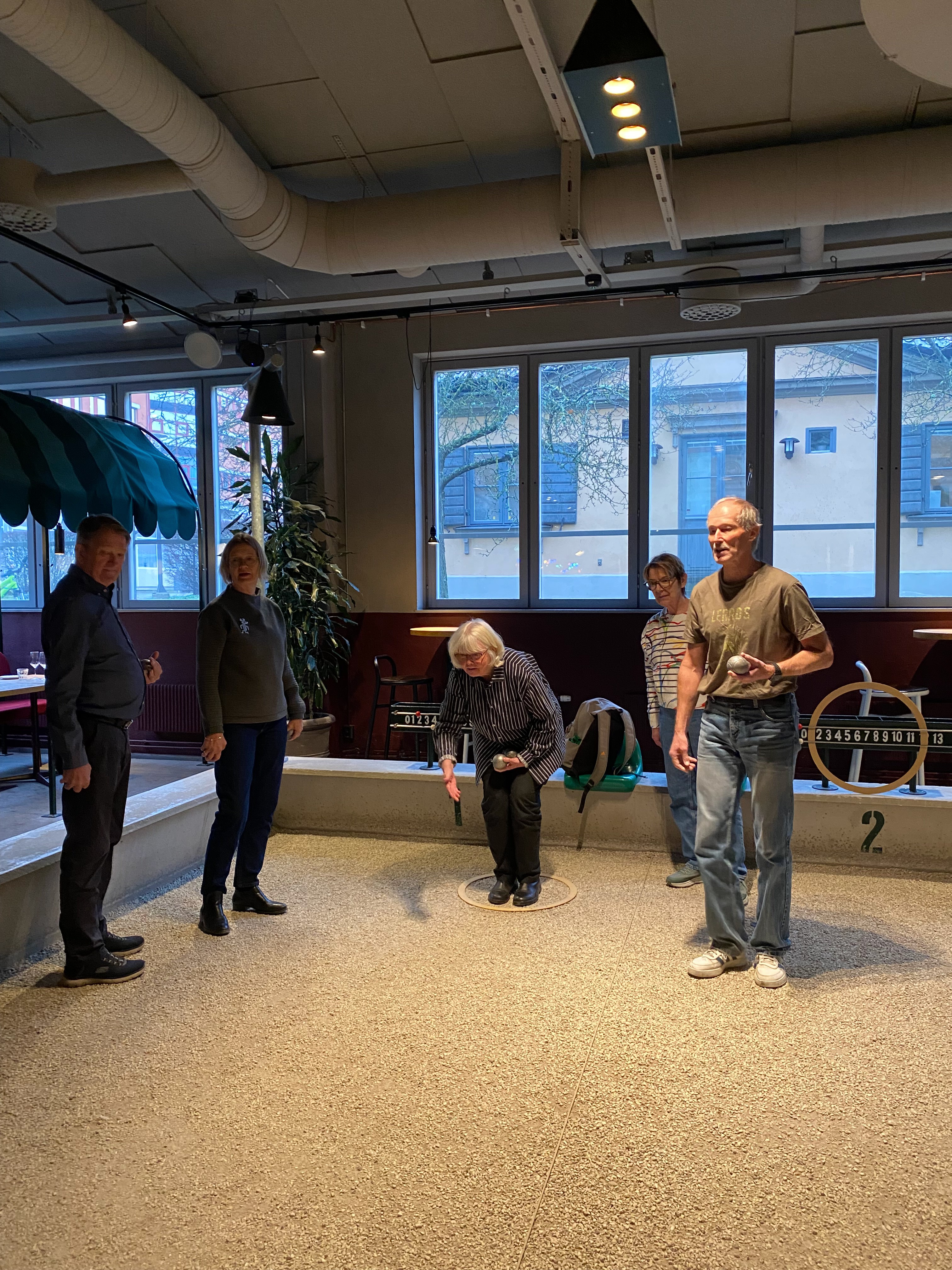 Lunch och boule på Boulebar i Liljeholmen. Inbjudan till medlemmar som är under 70 år i föreningen för information om SPF:s verksamhet, även diskussion/tips om aktiviteter framöver från medlemmarna. Vi var inte så många då några var sjuka, några var bortresta eller inte kunde.
