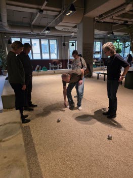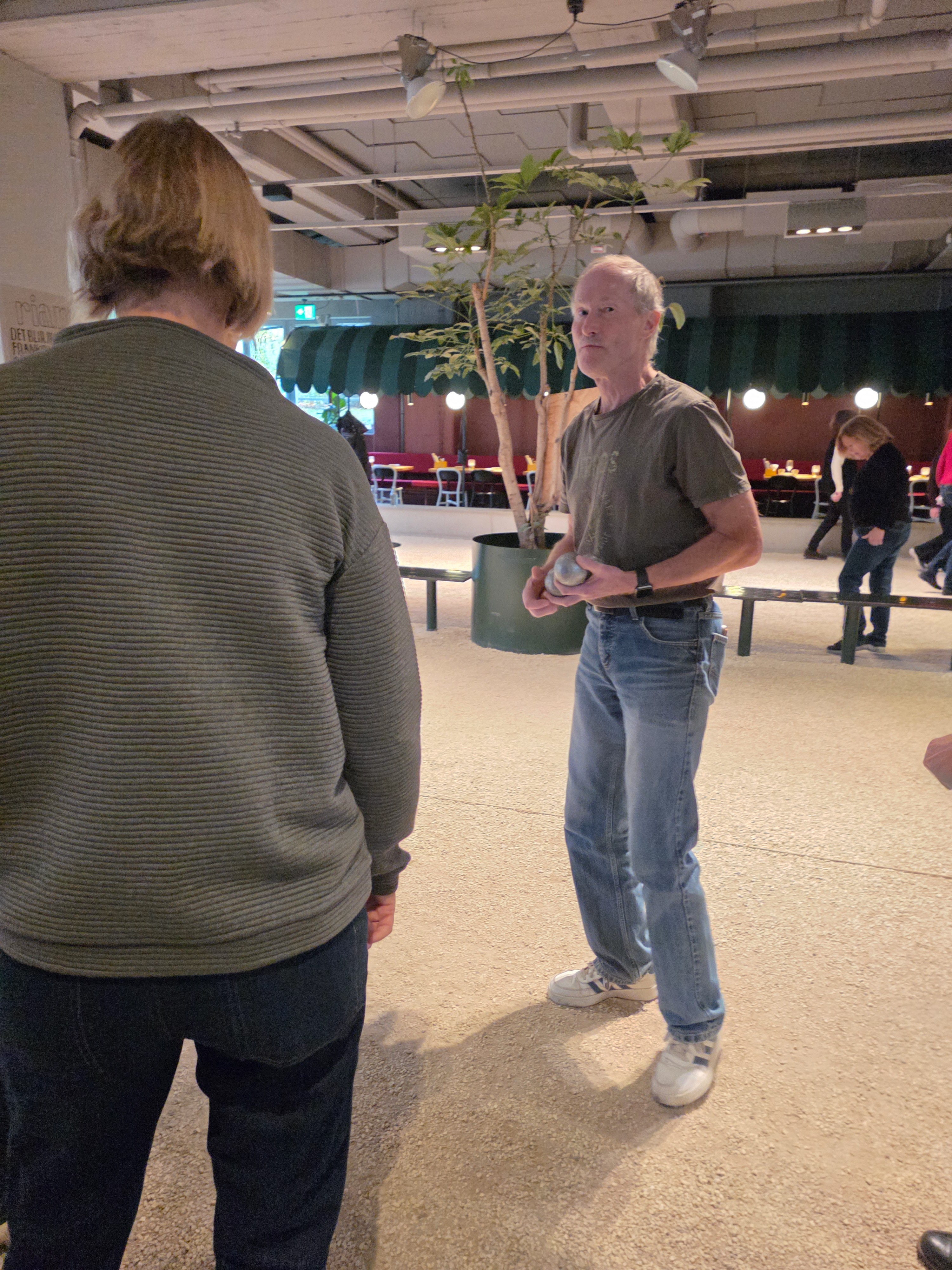 Vi fick hjälp med regler och tips på boulen av bouleexperten Lasse.
