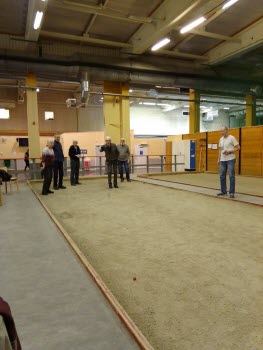 Ett härligt gäng som spelar boule i Liljeholmens idrottshall på vintern.