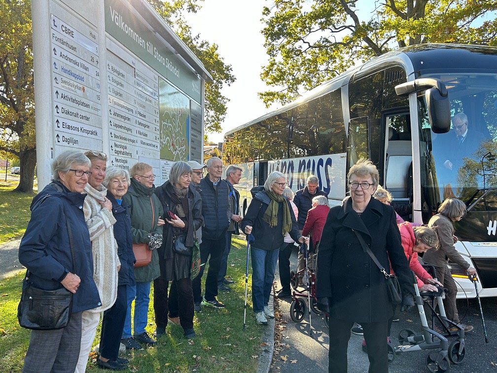 Vi var 36 st. som samlades för att bli guidade av Pontus Dalstrand: byggnadsarbetare, stadsvandrare och ledamot av Namnberedningen i Stockholm. Han hade mycket att berätta om minst tio olika områden i staden och deras förvandling till nya moderna bostadsområden. Solen sken och höstfärgerna sprakade, vilket förgyllde vår rundtur extra mycket.