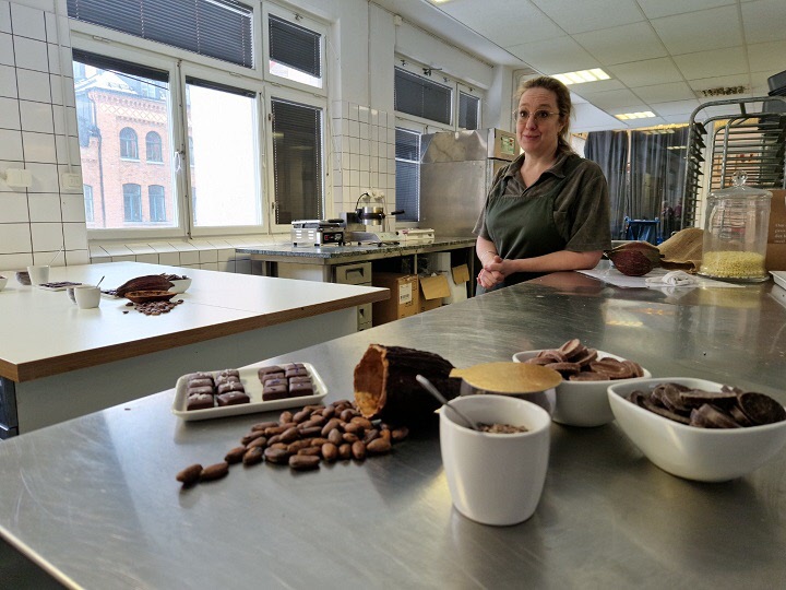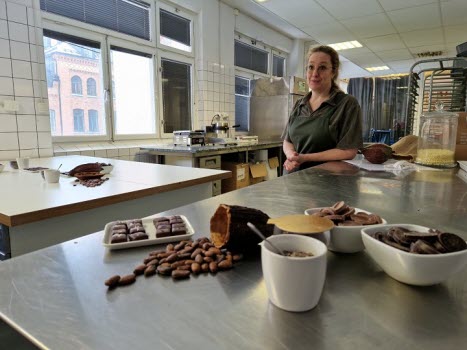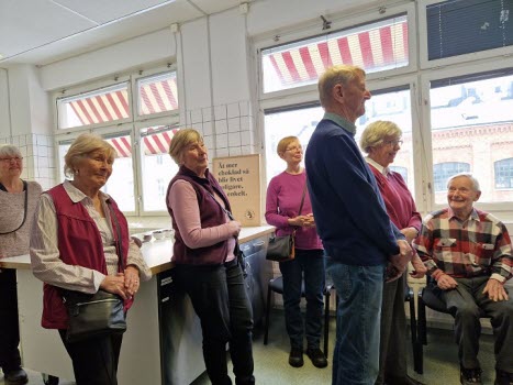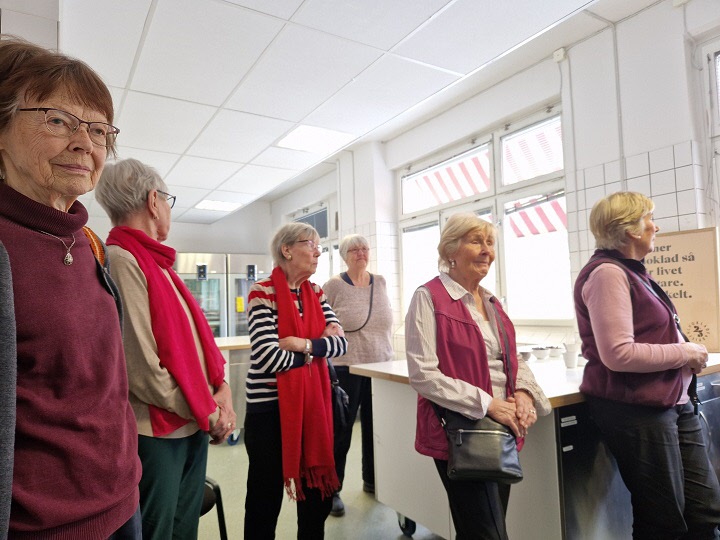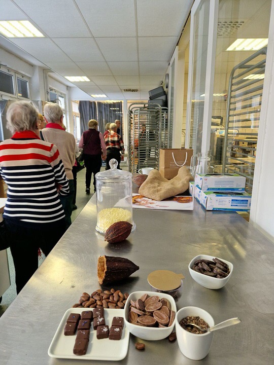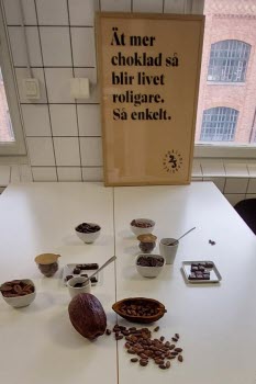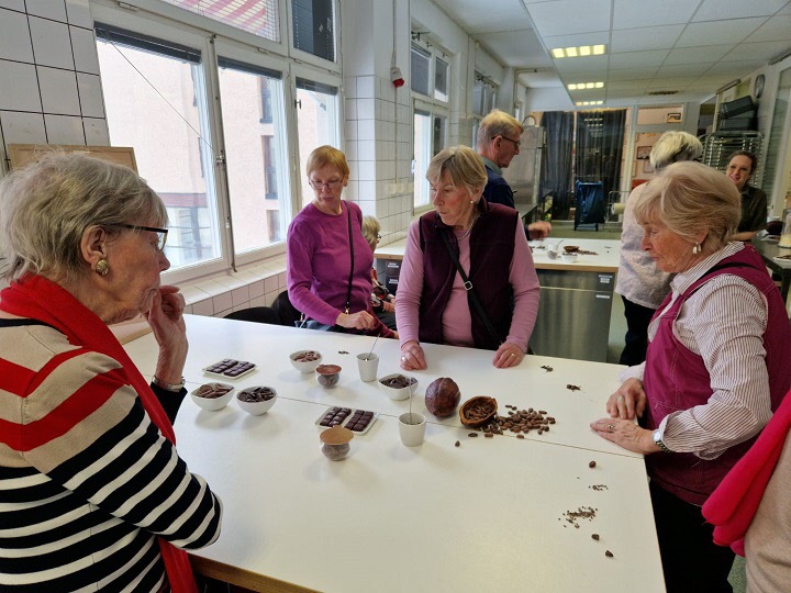 Den 23 februari blev det 11 chokladälskande medlemmar som ville veta mer om choklad. Vi började besöket med att få en härlig varm soppa (Potatis och purjolök) och efter den ett smaskigt efterrättsbord med olika delikatesser till en kopp kaffe, Sedan fortsatte vi till själva fabriken där Ellinor som grundat den tillsammans med maken Martin för 26 år sedan tog emot och visade oss hur chokladfrukterna ser ut, berättade hur och var de växer(Ett smalt bälte norr och söder om ekvatorn) och så fick vi prova allt från de rostade bönorna till olika procent kakao i olika chokladprover. Det måste vara över 26 % för att få kallas choklad. Vit choklad innehåller inte kakaopulver utan är gjord på kakaofettet och därför får den kallas choklad. Efter visningen kände vi oss båda mätta och klokare vad gäller kunskapen om choklad. En väldigt trevlig utflykt.