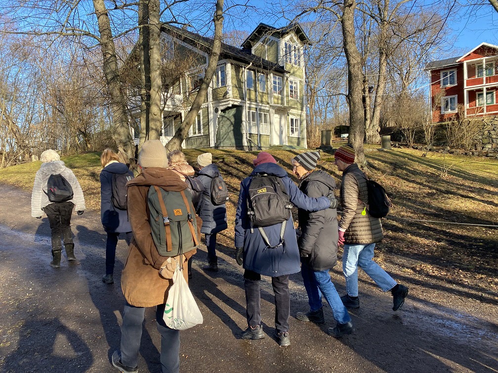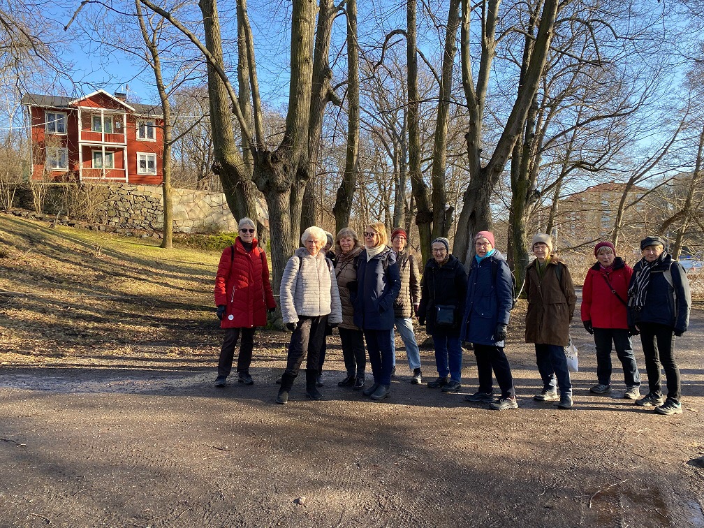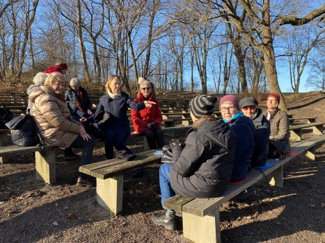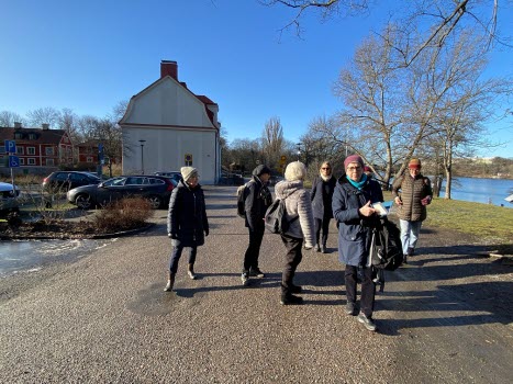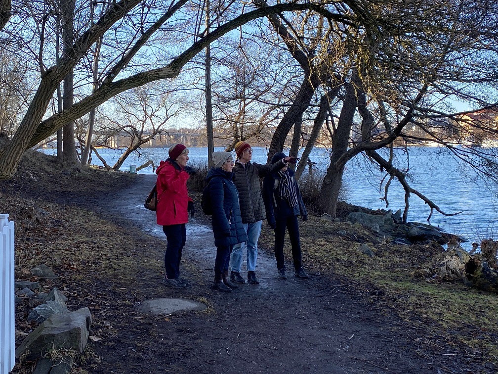 Vi träffades utanför spärrarna vid Gullmarsplans T-bana kl. 11:00. Vi fortsätt sedan med 4:ans buss till Hornstull och promenerade runt Långholmen. Det var strålande sol och plusgrader! Det blev en fantastisk fin promenad med 12 deltagare. Vi satt och åt våra medtagna matsäckar vid utomhusteatern, sedan fortsätt vi efter Bergsunds Strand till Hornstull och hem med 4:ans buss. Det var alla hjärtans dag och Birgitta bjöd alla på chokladhjärtan, mums!