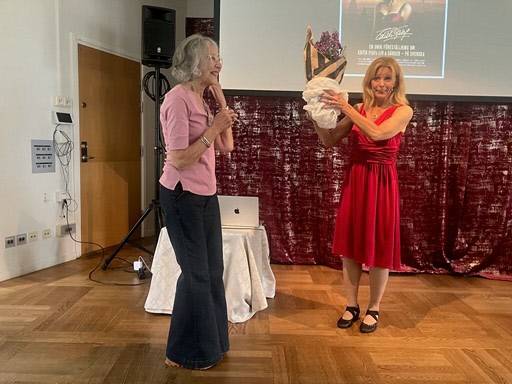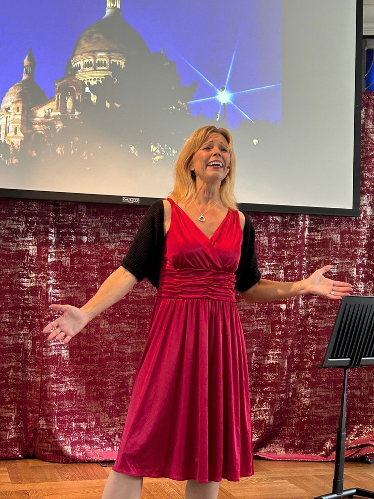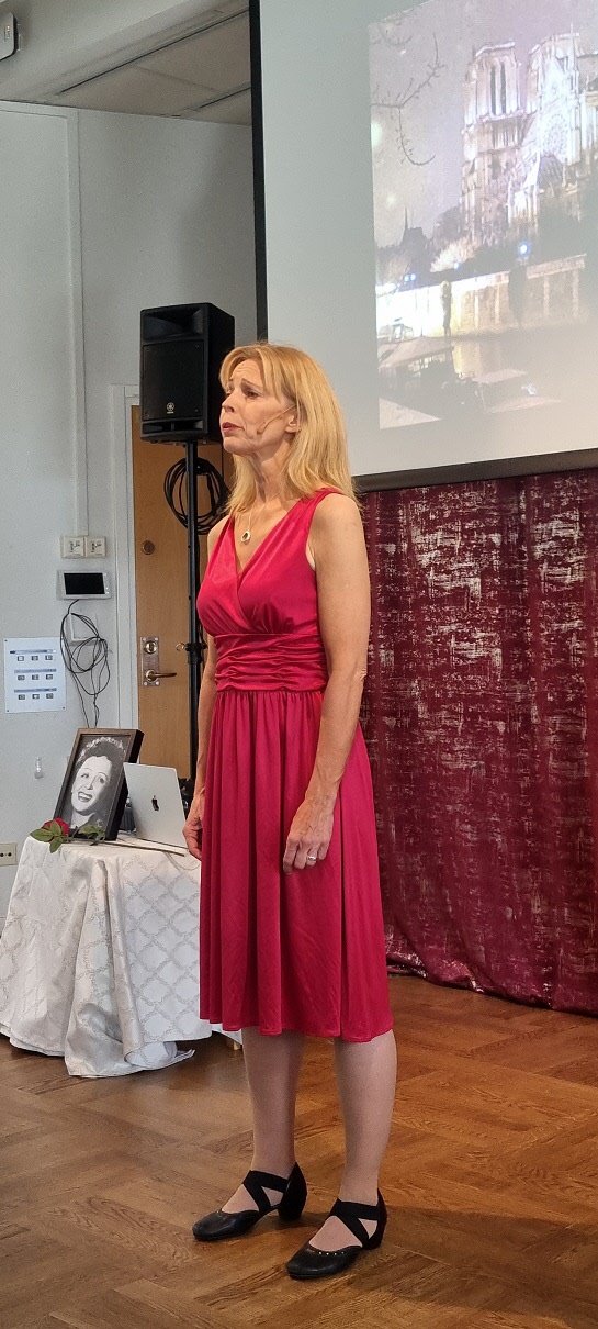 Det här månadsmötet blev en härlig start på höstsäsongen 2025. Denna gång hade vi glädjen att välkomna vår inbjudna gäst, Anna Bromée, som tog oss med på en gripande resa genom Edith Piafs liv och musik. Med sina egna översättningar och arrangemang från albumet Jag ville dansa med lyckan framförde hon Piafs sånger på svenska – och vilken upplevelse det blev!