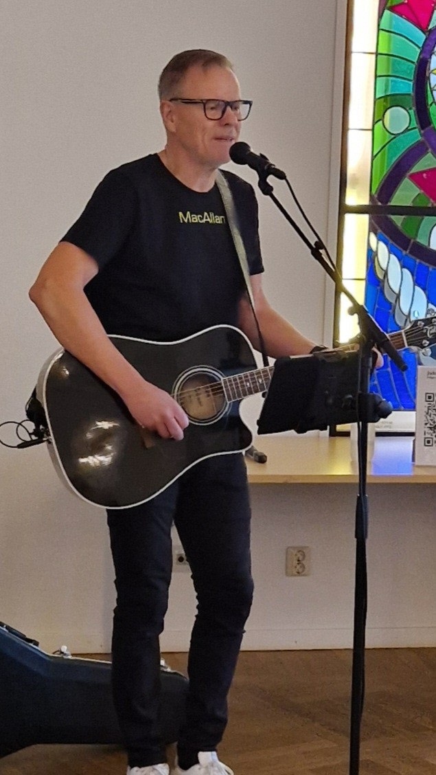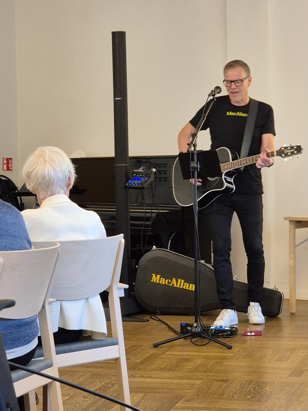 De närvarande medlemmarna fick önska sina favoritlåtar, som MacAllan framförde med både sång och gitarrspel.