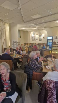 Vår första "mingelkväll" på Lux Stund Café i Sköndals Centrum blev så lyckad och lockade 30 spf-medlemmar. Man väljer en enkel maträtt och dryck i förväg, betalar på plats, sätter sig vid ett bord och vips kommer mat och dryck. Bra lokal, mycket prat och hög stämning blev det. Och fräscha, goda rätter samt dryck till självkostnadspris serverades. Vi kommer fortsätta med dessa "mingelkvällar" och nästa tillfälle blir måndag 17 november kl 17-19.30