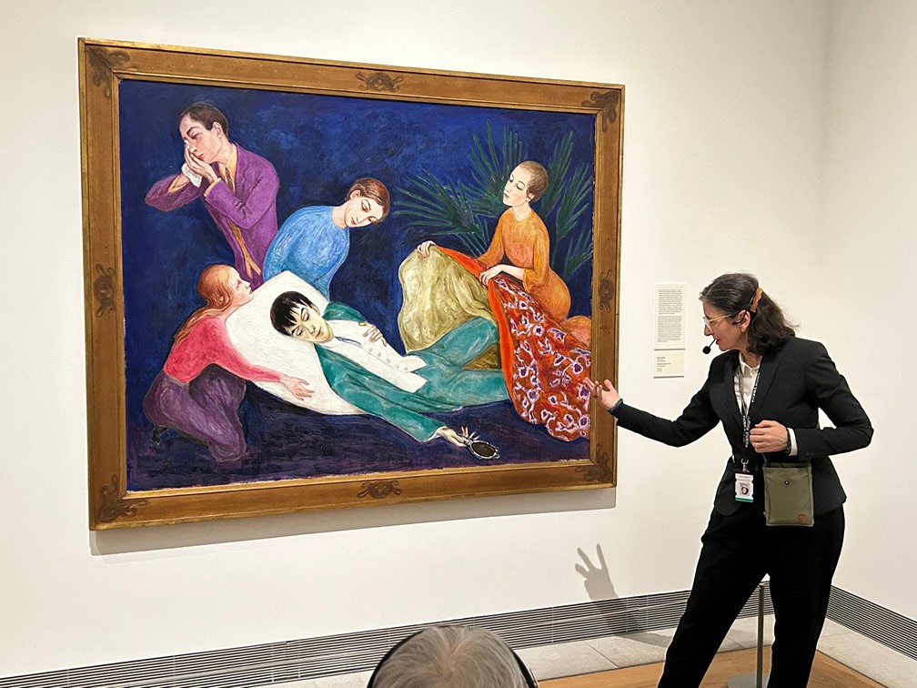 Vi var 14 stycken medlemmar från SPF Sköndal som deltog i visningen som leddes av en kunnig guide. Utställningen består av en samling på omkring 100 verk av svenska konstnärer som verkade under perioden 1900 till 1940. Guiden var entusiastisk och fick oss engagerade. Hon valde ut ett fåtal verk som hon beskrev ingående och levande. Hon berättade även en del om konstnärerna och deras liv. De konstnärer