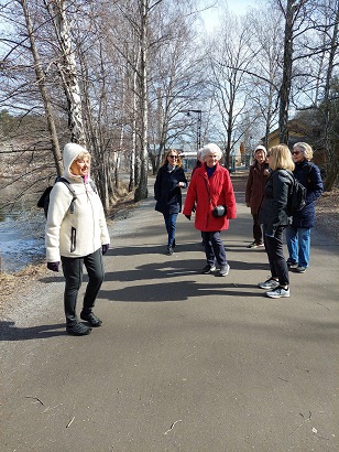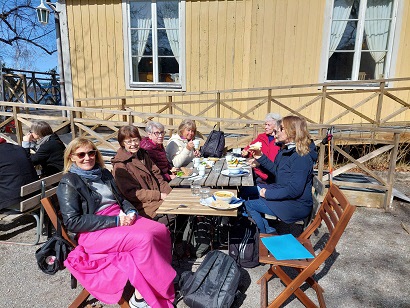 Vi hade en väldig tur med vädret på dagens promenad . Efter att ha klivit av tvärbanan vid sjön Trekanten, gick vi mot Vinterviken och fortsatte sedan längs vattnet till Klubbensborg där vi åt lunch. Linssoppa serverades, det var "linssoppans dag" och riktigt gott faktiskt!