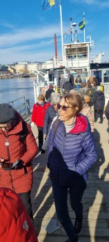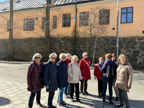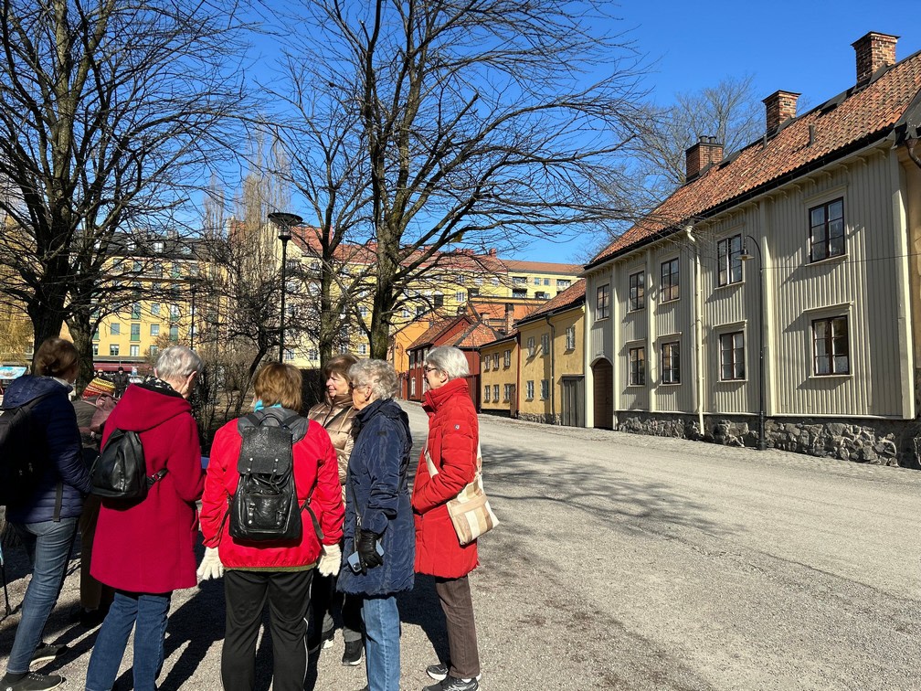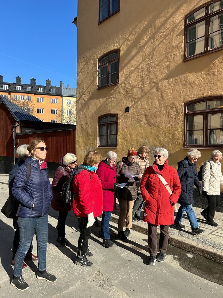 Vi träffades utanför spärrarna vid Gullmarsplans T-bana kl. 11:00. Vi blev 12 kvinnor som fortsätt med T-banan till Medborgarplatsen där vi börjar vår vandring på Östra Söder. Katarinabangatan runt Nytorget och sedan Malmgårdsvägen till Barnängens brygga där vi tog färjan över till Hammarby sjöstad. Slutligen åt vi lunch på Hammarby Grill och bar. Det blev en fantastisk dag med bra väder. Återigen, tack Birgitta för en mycket fin och trevlig promenad.