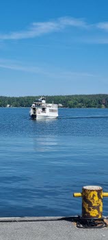 Tisdagen den 13/6 var vi 12 stycken damer som tog oss med t- bana till Ropsten och sedan SL:s pendelbåt till Storholmen som ligger i Värtan I det vackra sommarvädret fick vi en härlig båttur. En promenad runt ön gav oss en känsla av att vara tillbaka i barndomens somrar. En okänd pärla nära storstan men en grönskande ö där vi åt vår matsäck nära vattnet med härlig skärgårdsutsikt. Vi rekommenderar denna utflykt till er alla.