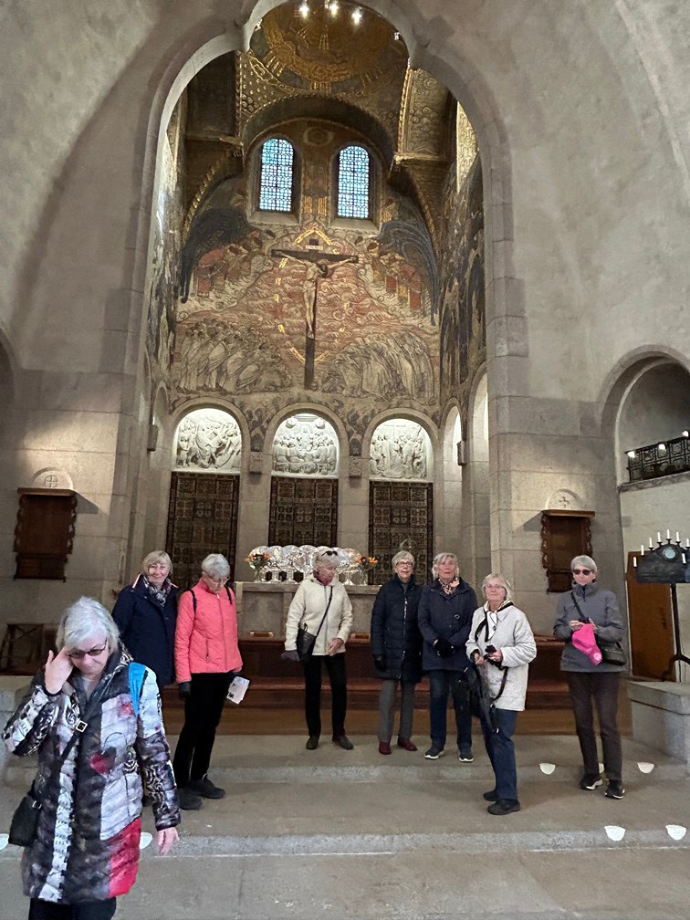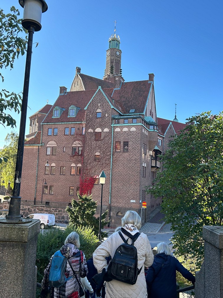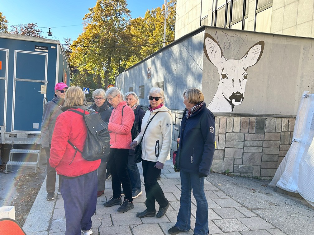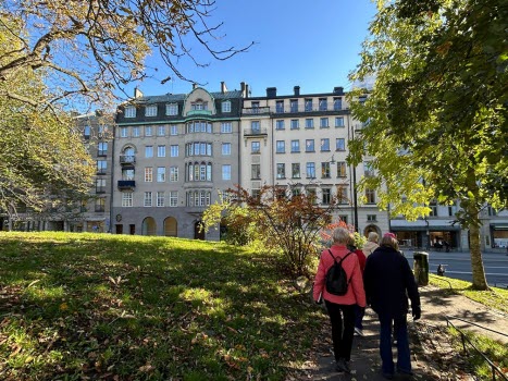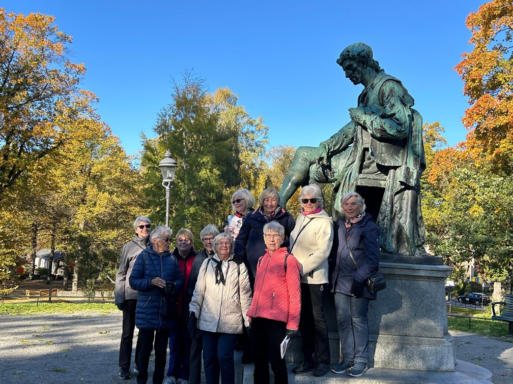 Vi, 11 kvinnor, åkte tunnelbanan till Tekniska högskolan för att promenera genom Lärkstaden förbi Engelbrektskyrkan. Vi fortsätt till Villagatan och Floragatan där det fanns vackra sevärda hus. vi kom fram till Humlegården och tittade på statyer, sedan gick vi vidare till Odenplan där några stannade för att fika medan andra åkte hem. Vi fick väldigt bra höstväder med vackra höstfärger. En glad sällskap som njöt av vädret.