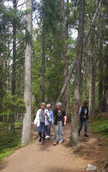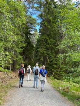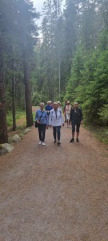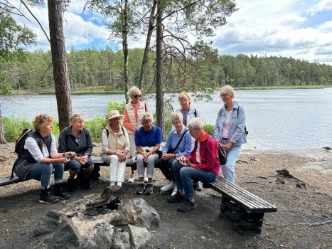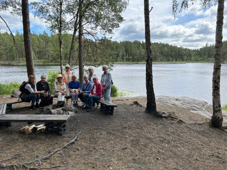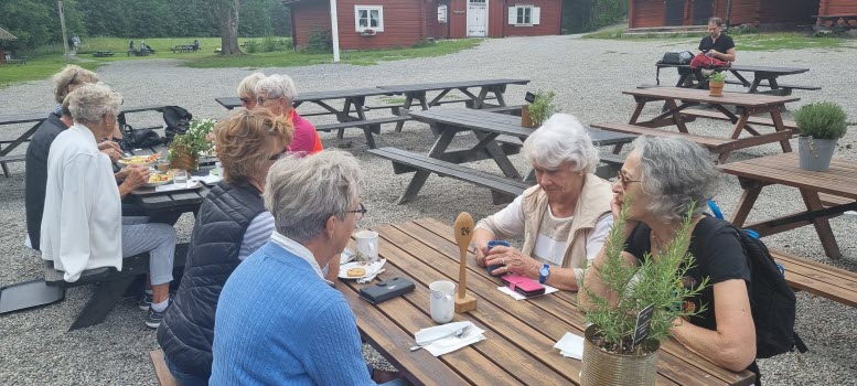 Vi var 10 personer som gick ett fint promenadvänligt 5 kilometer spår. I Tyresta by fanns ett bra café med bord både inom-och utomhus, där satte vi oss ute och åt vår lunch. En fin, trevlig och bra dag tyckte alla.