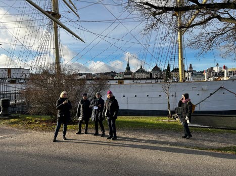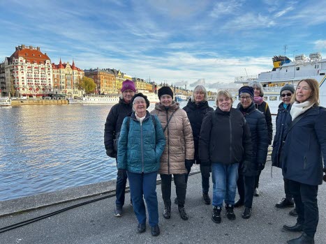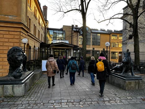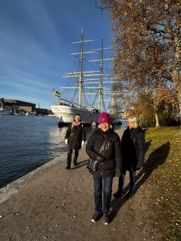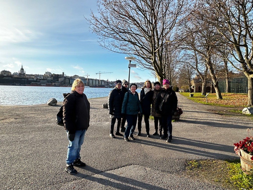 Vi var 13 damer som åkte från Gullmarsplan till Slussen. I stället för att stå och vänta på bussen i kylan promenerade vi en hållplats, och därefter tog vi bussen till Kungsträdgården och fortsatte vår promenad. Temat för dagen var ”Konstens och maktens hus på holmar mitt i stan”. Vi gick över Blasieholmen, Skeppsholmen och Kastellholmen.