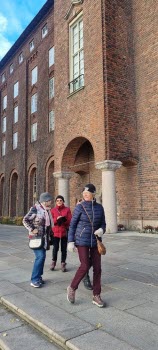 Vi var åtta som gick från Västerbroplan till Stadshuset i vackert höstväder. Sedan vidare till Gamla stan för lunch innan vi vänder året till Sköndal.