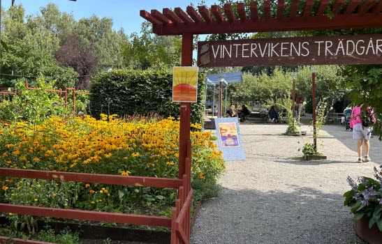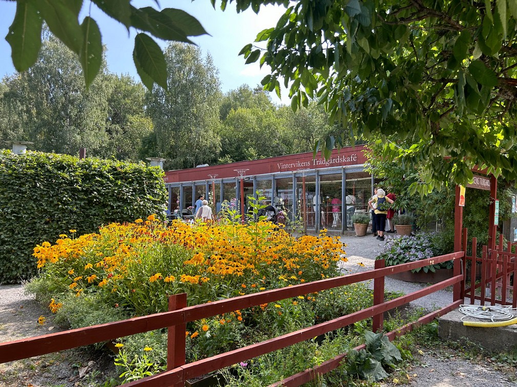 Trekanten ner till Vinterviken och runt udden och tillbaka till kolonilotterna där vi fikade på Vintervikens Trädgårdskaféet. Vi åkte tillbaka till Gullmarsplan med Tvärbanan från Liljeholmen. En mycket trevlig promenad som vanligt, tack Birgitta!