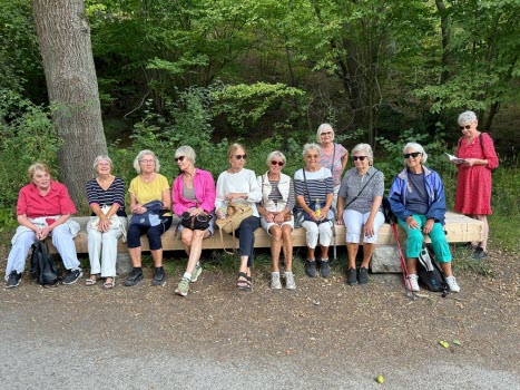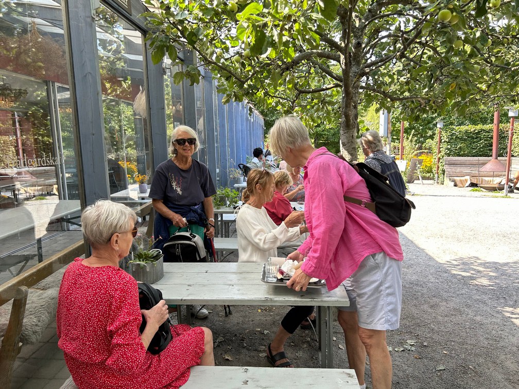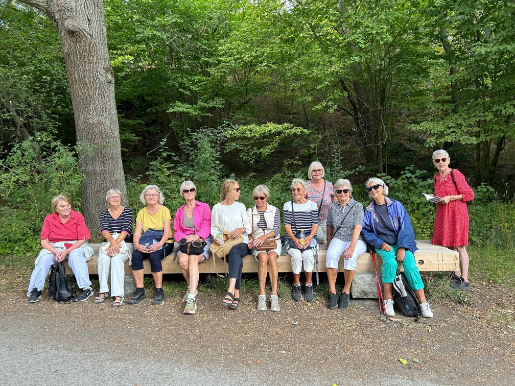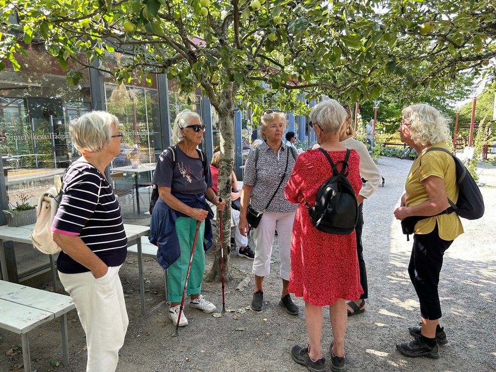 Det blev en fin sommar dag då 12 kvinnor träffades i Gullmarsplan och tog Tvärbanan till Liljeholmen. Vi promenerade efter