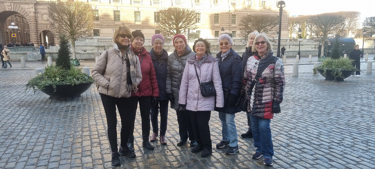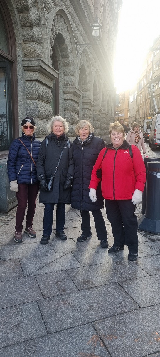 Vi var 13 stycken som i det vackra soliga vädret gick från Slussen först till Kungsträdgården, tittade sedan på NK:s julskyltning och gick vidare till Gamla Stans julmarknad innan vi avslutade säsongens sista promenad med ett besök på Grillska caféet.