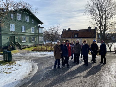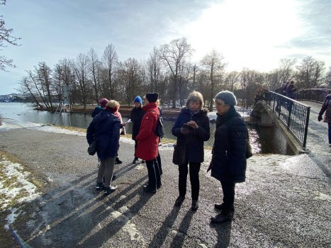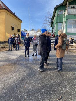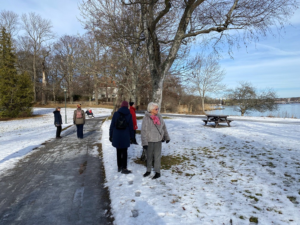 Vi träffades vid Gullmarsplan och tog T-banan till T-Centralen och spårvagn till Nybroplan. Vi blev 12 medlemmar och fick en fin solig vinter dag! Vi tog båten till Blockhusudden, den gick kl. 11:30. Det blev en härlig promenad på Djurgården med en stop för fika på Kruthuset som ligger vid Vikingarnas varv strax efter Lilla sjötullsbron. På vägen tillbaka gick vi förbi Thielska galleriet och förbi Kaknästornet sedan tog vi bussen tillbaka till T-Centralen.