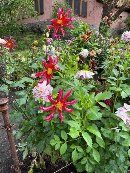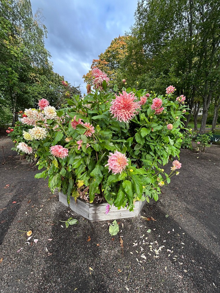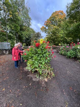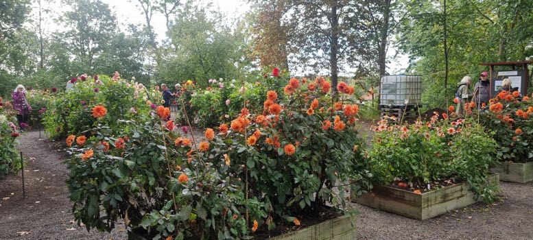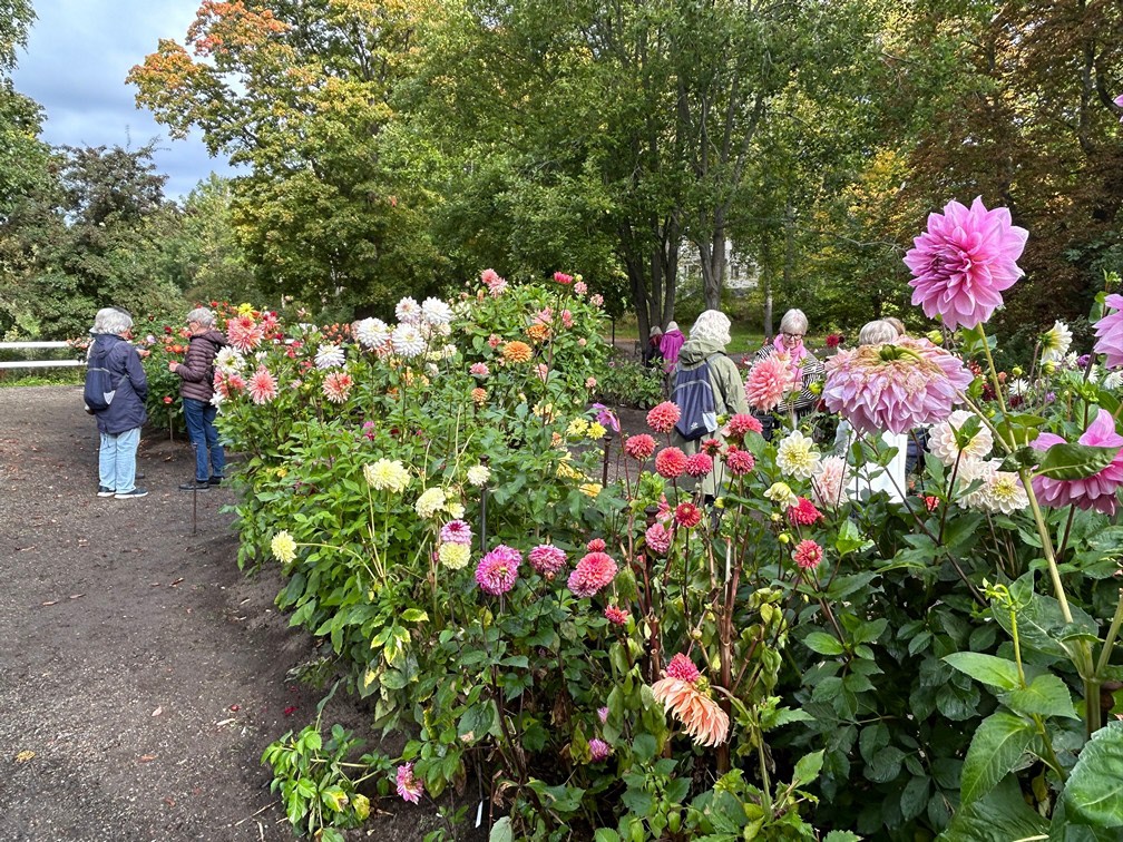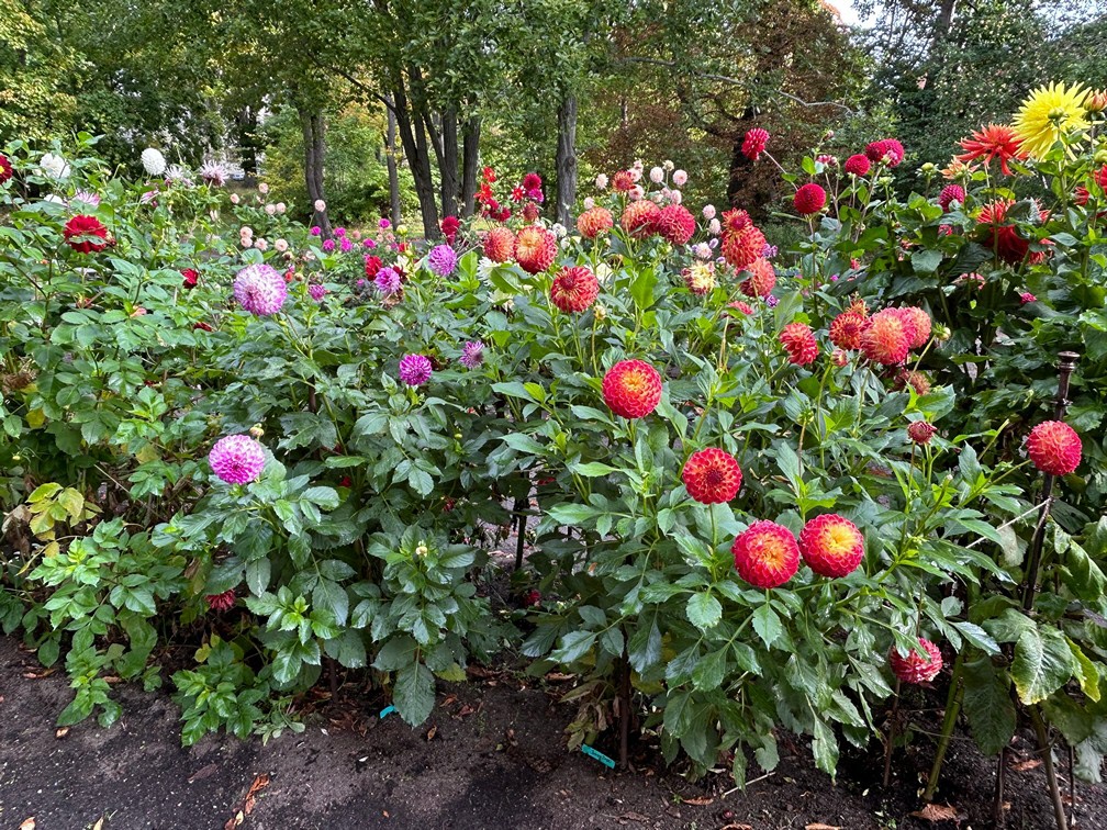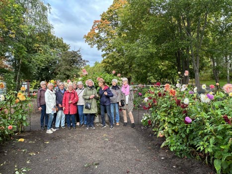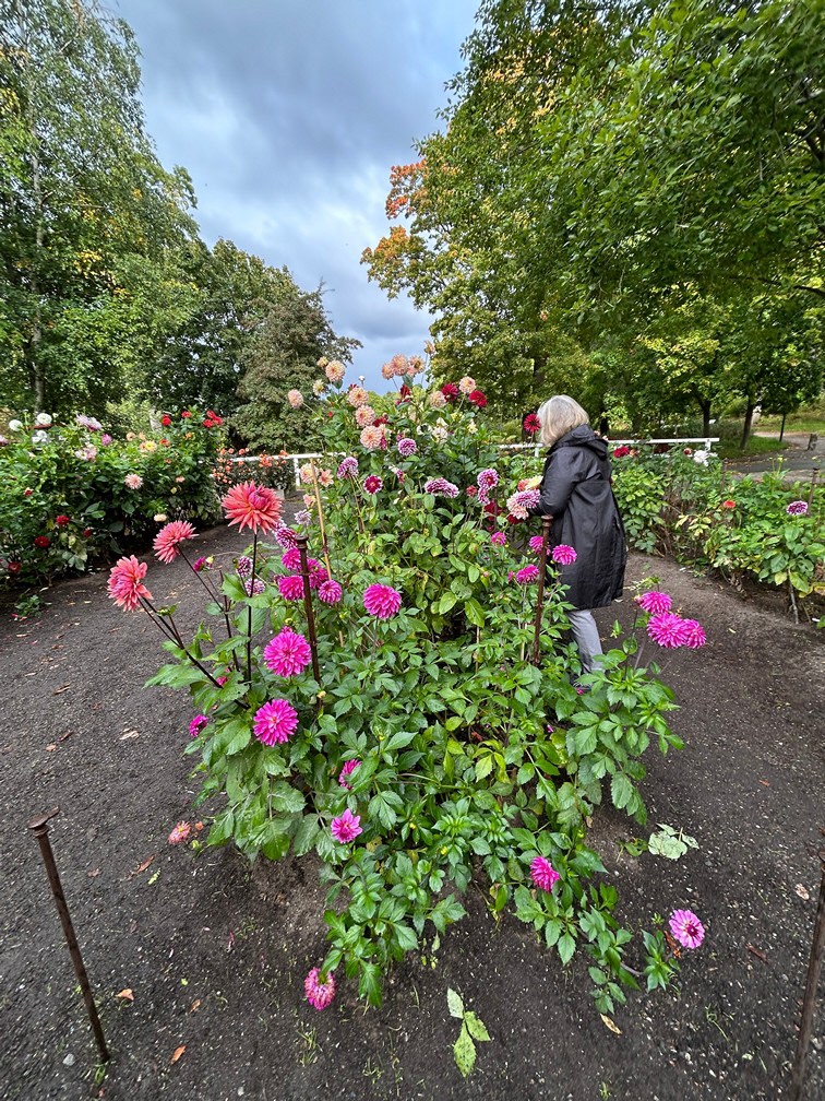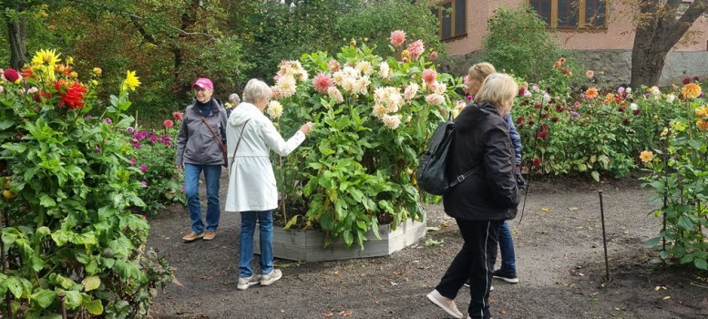 Vi träffades vid Gullmarsplan och tog tunnelbanan till Enskede gård, där dagens promenad började. Från stationen vandrade vi genom den lummiga Lindeparken till de charmiga odlingslotterna, och därefter vidare till den vackra Dahliaparken.