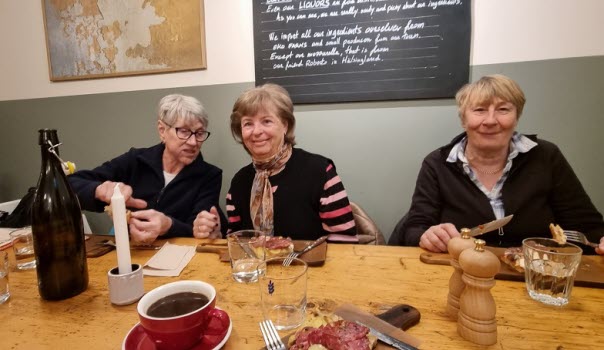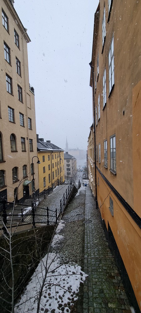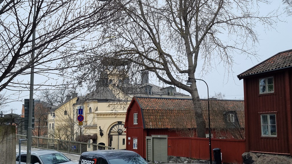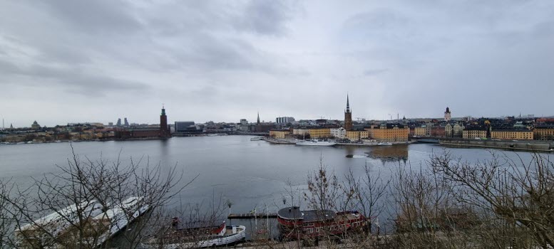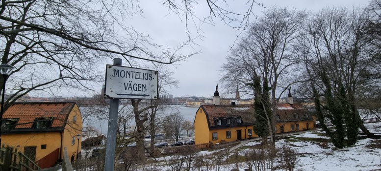 Vi träffades utanför spärrarna vi Gullmarsplans T-bana kl. 11:00. Vi tog sedan 4:ans buss till Zinkensdamm och promenerar över Skinnarviksbergen och Mariaberget till Slussen. Det fanns fina rastplatser på Monteliusvägen med en magnifik utsikt över Stockholm.