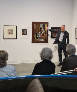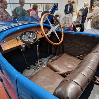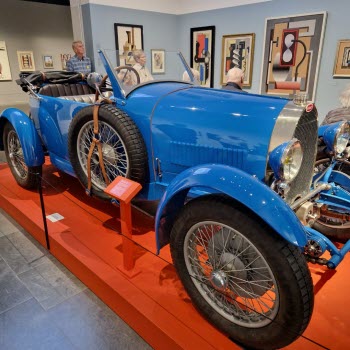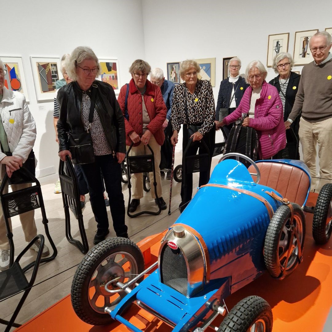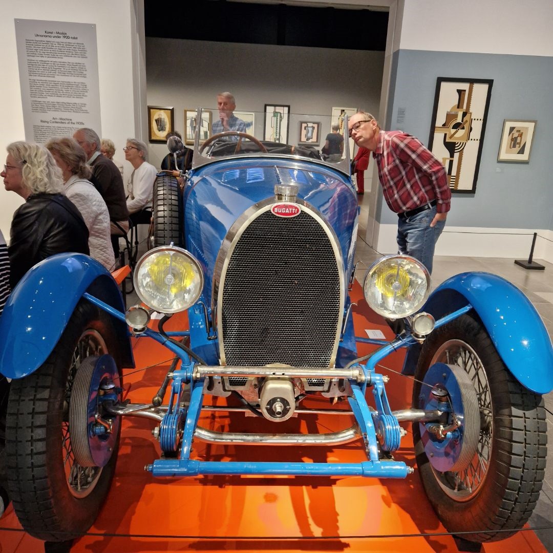 Vi hade en guidad visning på utställningen Konst+Maskin. Utmanarna på 1920-talet. Vi såg skulptur och målningar av bl a Otto Carlsund, Vera Meyerson och Waldemar Lorenzon. En fantastisk Bugatti från 1927 mötte oss i första utställningsrummet." Bugattin signalerar rörelse och är bilarnas fullblod". Vi hade en mycket kunnig guide som dessutom talade högt och tydligt. Vi var 22 stycken och många avslutade med en härligt lunch.