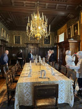 Det vackra Tidö slott, som fyllde 400 år, är ett av Sveriges bäst bevarade slott från stormaktstiden och hade mycket att bjuda på. Slottet uppfördes mellan 1625 och 1641 av rikskanslern Axel Oxenstierna, en av Gustav II Adolfs närmaste män och även förmyndare åt drottning Kristina. I dag ägs och drivs slottet av David von Schinkel, vars familj öppnade det för allmänheten redan 1971. Alla deltagare var mycket imponerade av att få se det vackra slottet med dess konst, möbler och spännande historia.