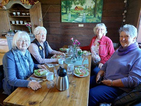 Vi åt lunch före besöket på Lars Lerins konstmuseum Sandgrund i Karlstad. Därefter åkte vi till Selma spa i Sunne där vi övernattade. Vi åt en god middag efter att ha tillbringat tid i Spa -avdelningen som var reserverad i tre timmar för oss.