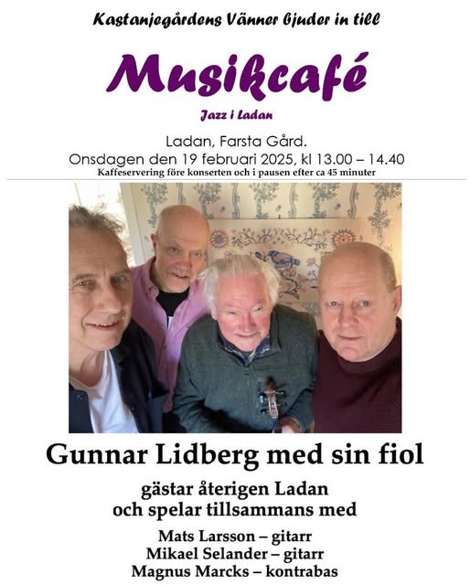 WASA-kvartetten från Uppsala med en musikkavalkad genom 40- 50- och 60- talets swingmusik med latin-rhythmer då och då.