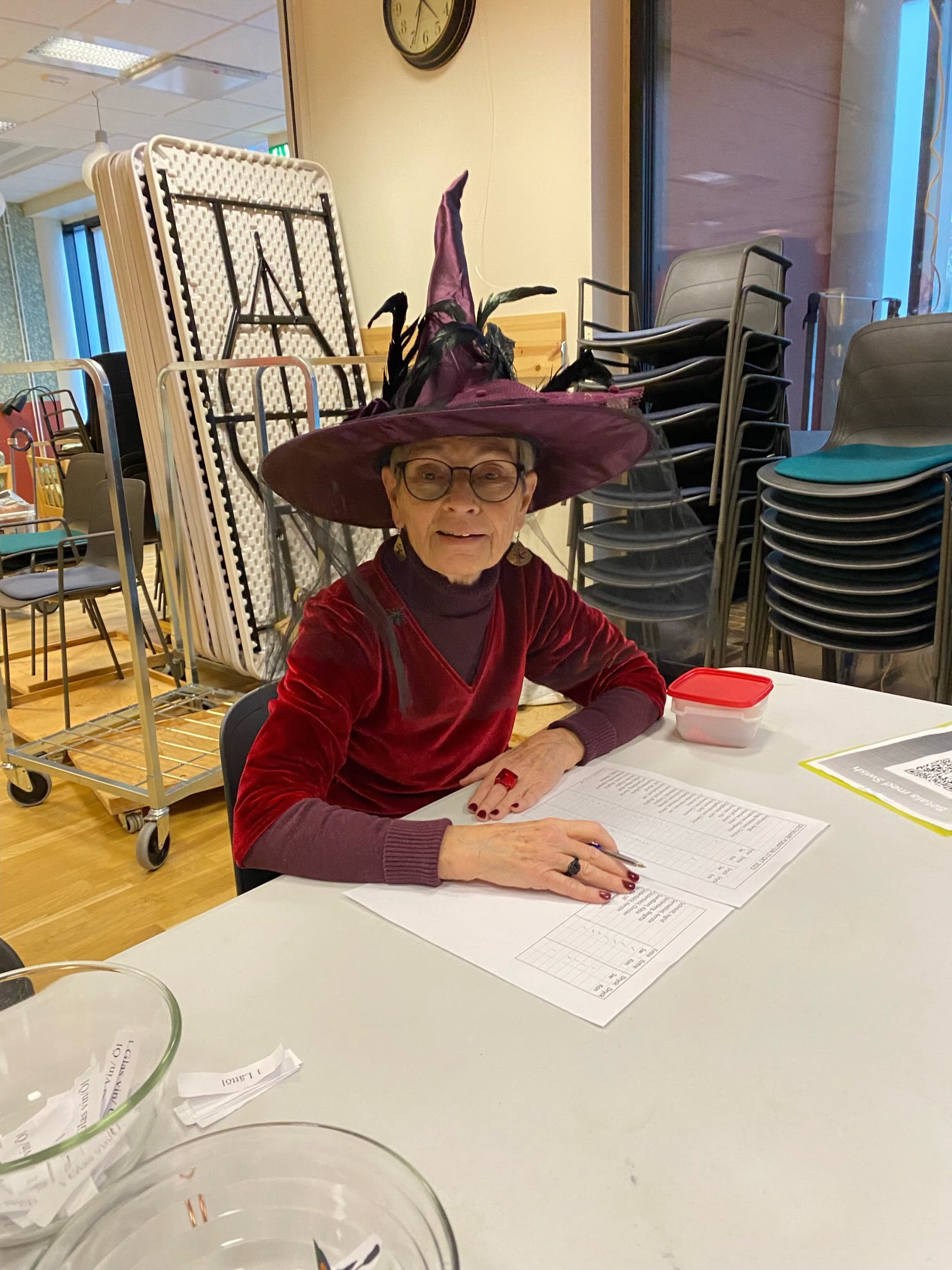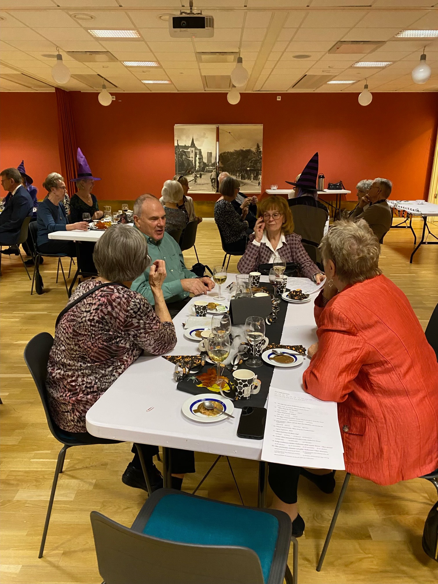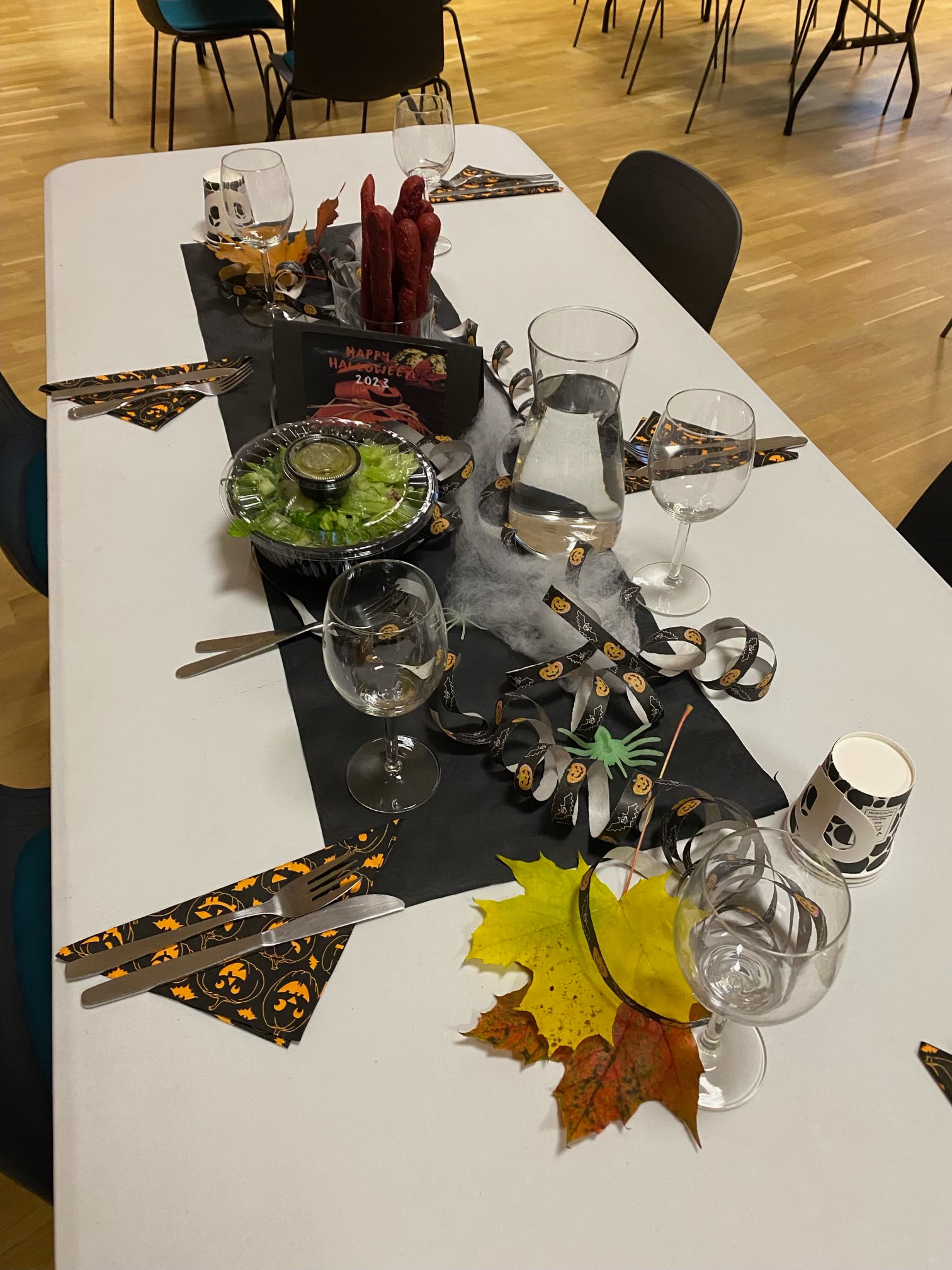 Lokalen var fint utsmyckad med allehanda ruskigheter och många i personalen var utklädda till häxor.