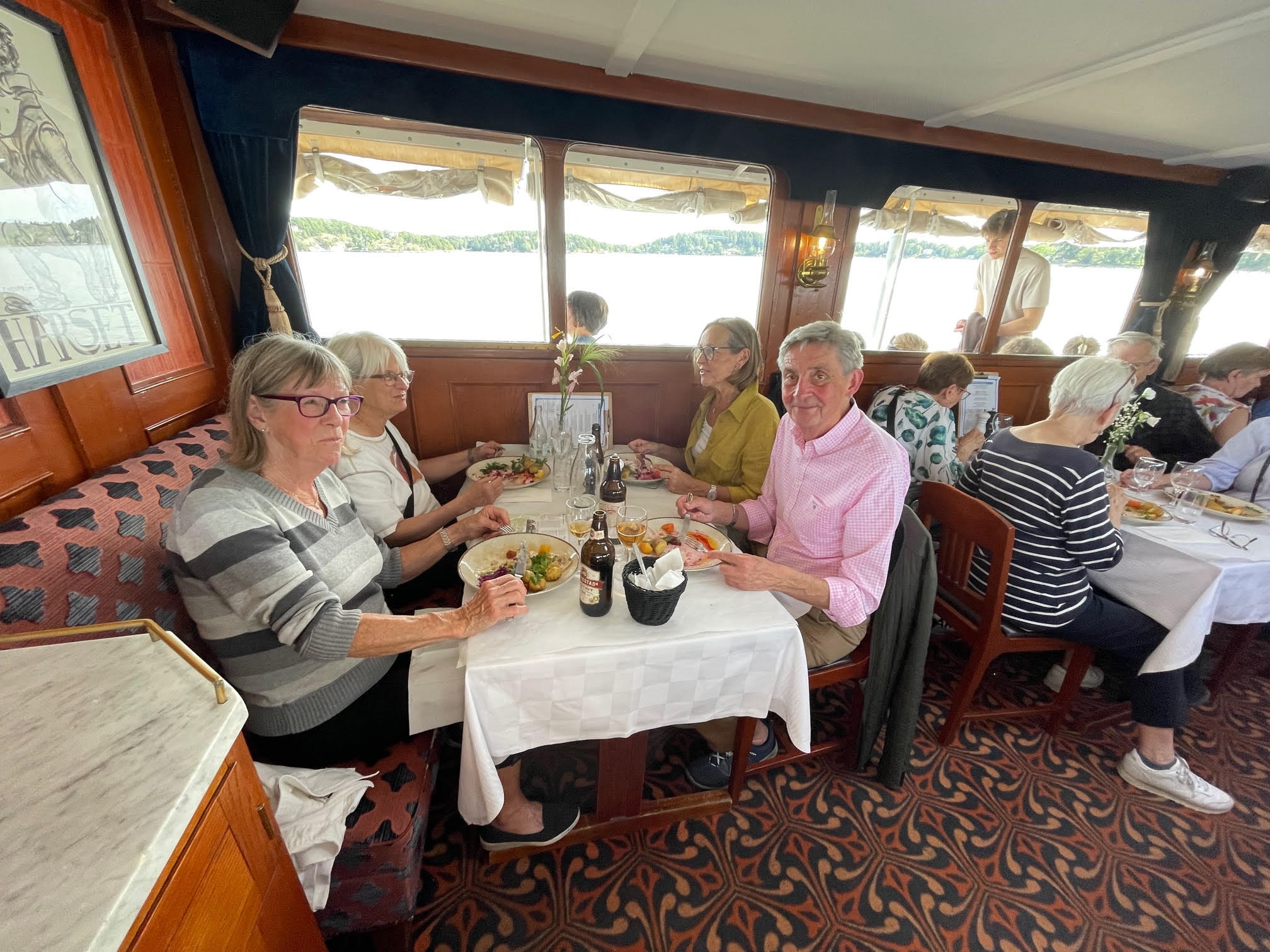 22 förväntansfulla SPF’are samlades vid Kajplats 15 - 16 på Strandvägen i Stockholm i strålande sommarväder. Vi åkte med Strömma Kanalbolagets M/S Östanå 1 (byggd 1906) som under ca tre timmar tog oss med på en guidad tur i Stockholms innerskärgård. Maten och drycken som serverades var mycket välsmakande.