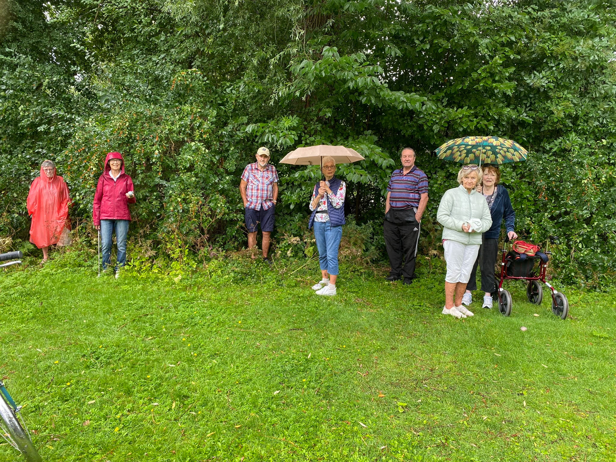 Vi var några tappra själar som trotsade regnet och greppade boulekloten. Det hanns med en omgång spel och fika. Sedan öppnade sig himlen. Några var förberedda för regn medan vi andra fick ta skydd under träden. Men roligt och trevligt hade vi ändå.