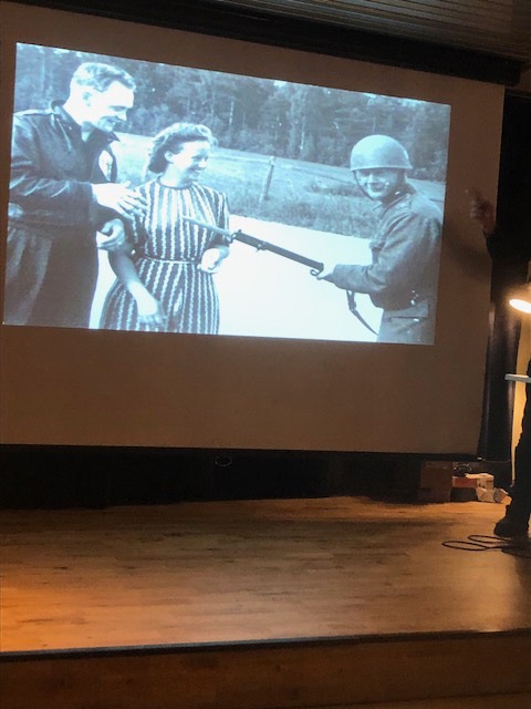 Vi fick ta del av andra världskrigets fasor och särskilt följa ett antal amerikanska väldigt unga soldater som efter att deras plan blev beskjutet lyckades ta sig till Sverige. De var 10 i planet och de flesta lyckades med hjälp av fallskärm överleva. Ett par soldater var dock kvar i planet när det kraschade och de överlevde osannolikt nog även dom. Allt detta hände i slutet av kriget år 1944 och vi fick flera berättelser om deras liv i Sverige och hur väl mottagna de blev i vårt land. Ett exempel som gavs var att soldaterna hade väldigt bra lön från USA, många hade upp till 3000 kr i månadslön vilket var väldigt mycket på den tiden. Många spenderade stora summor på diverse varor så affärslivet blomstrade på den lilla orten där dom bodde, t ex köpa en cykel på förmiddagen och när kedjan hoppade av köpa en ny på eftermiddagen.