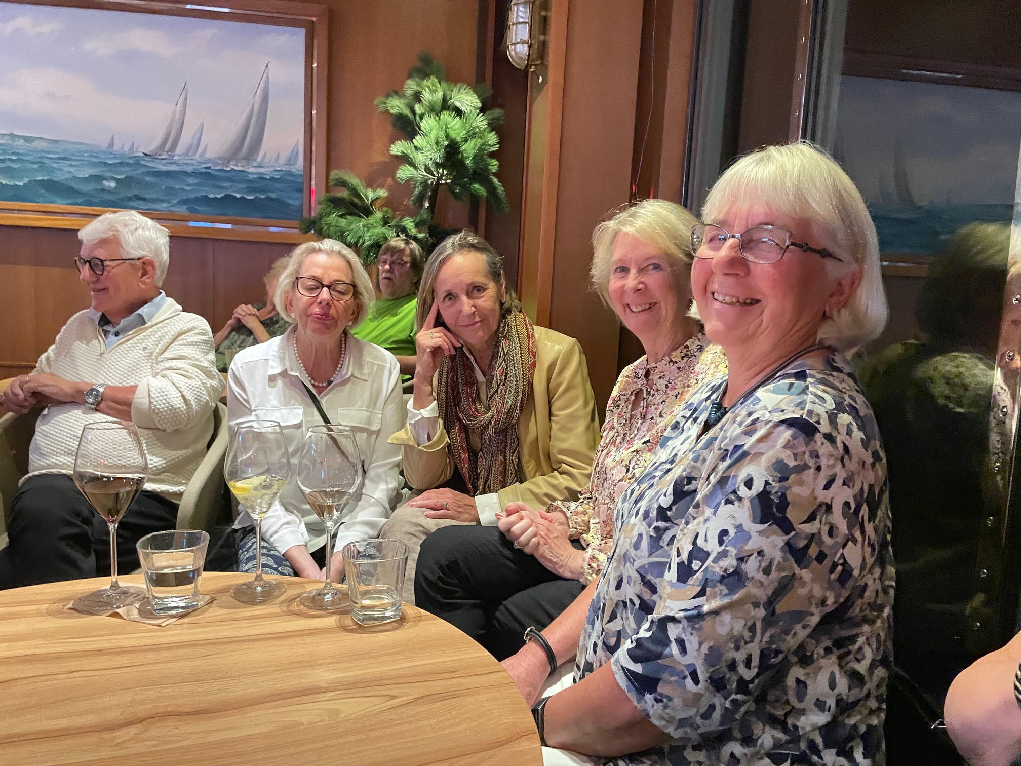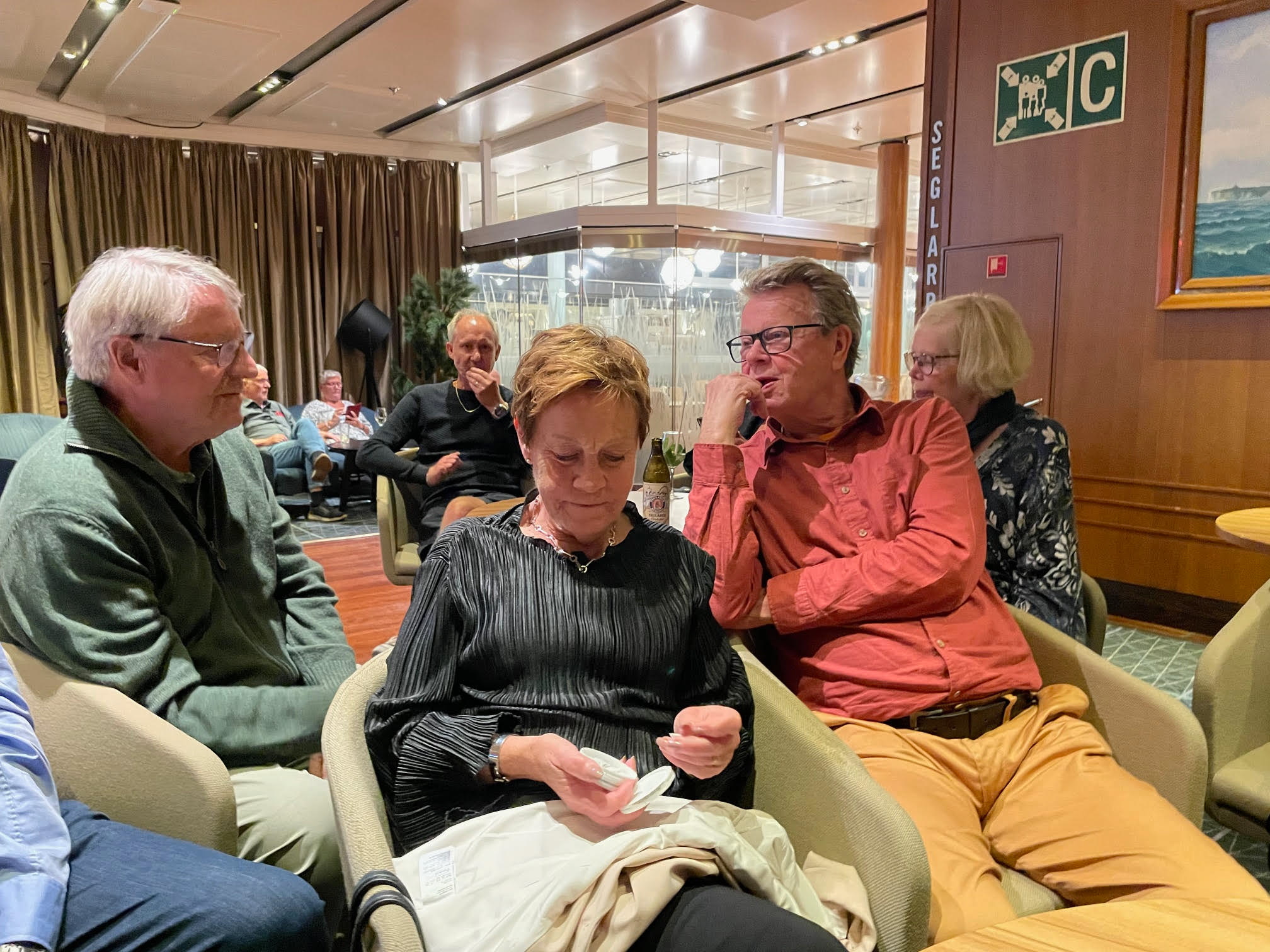 Efter skaldjursmiddagen samlades alla i sällskapet i pianobaren. Vi hade en mycket trevlig afton i ”glada vänners lag” och kom inte i säng för än fram emot midnatt.
