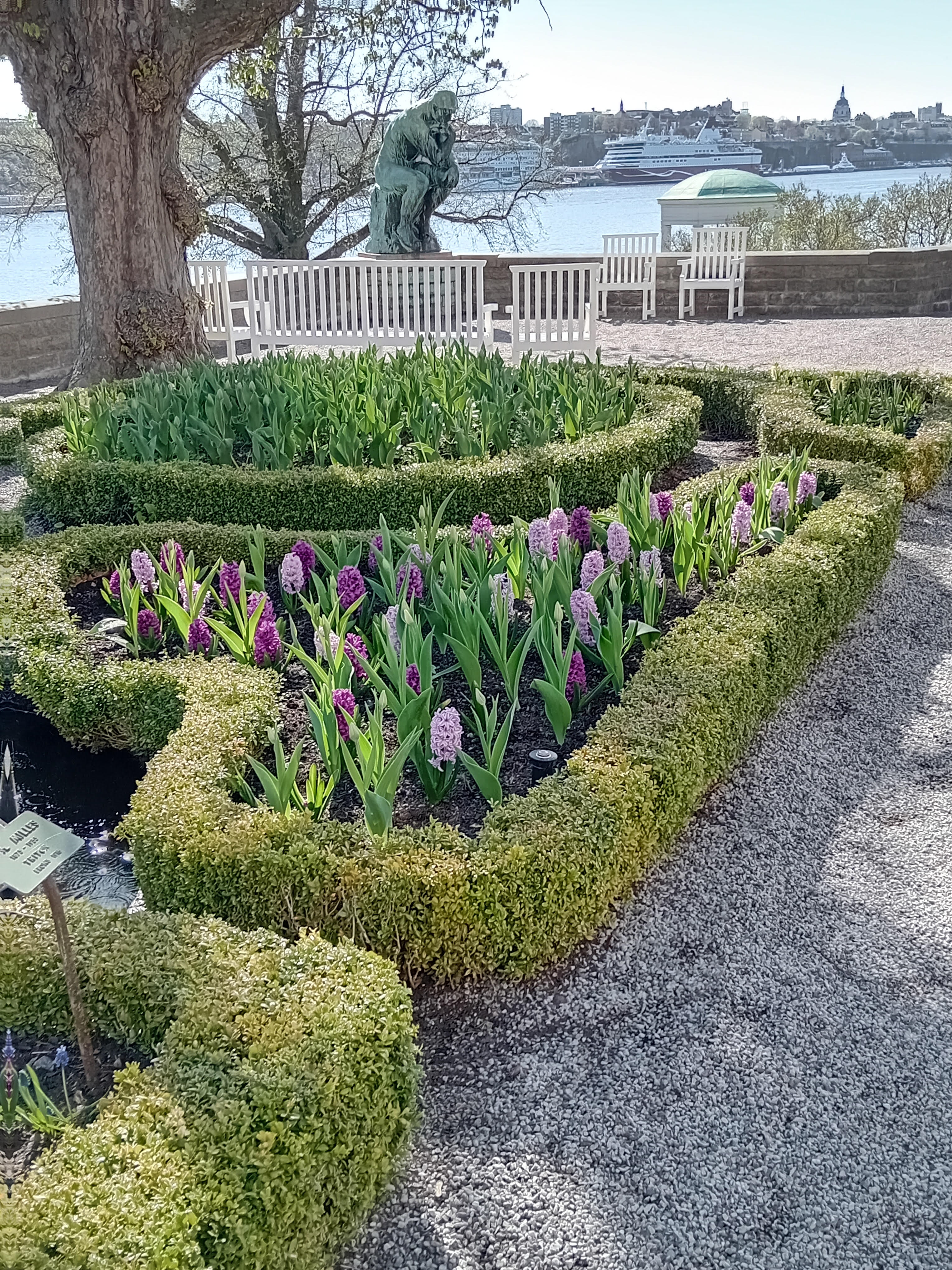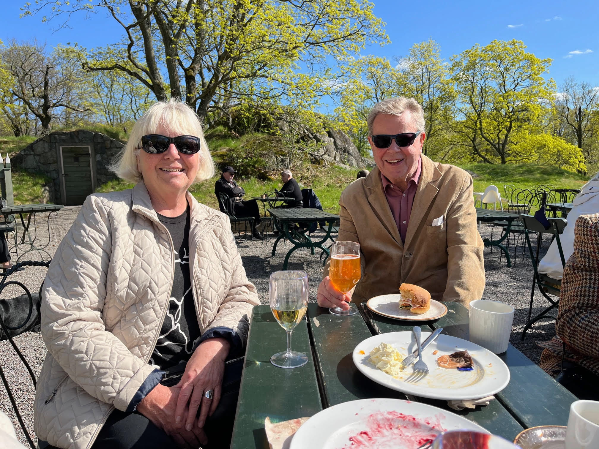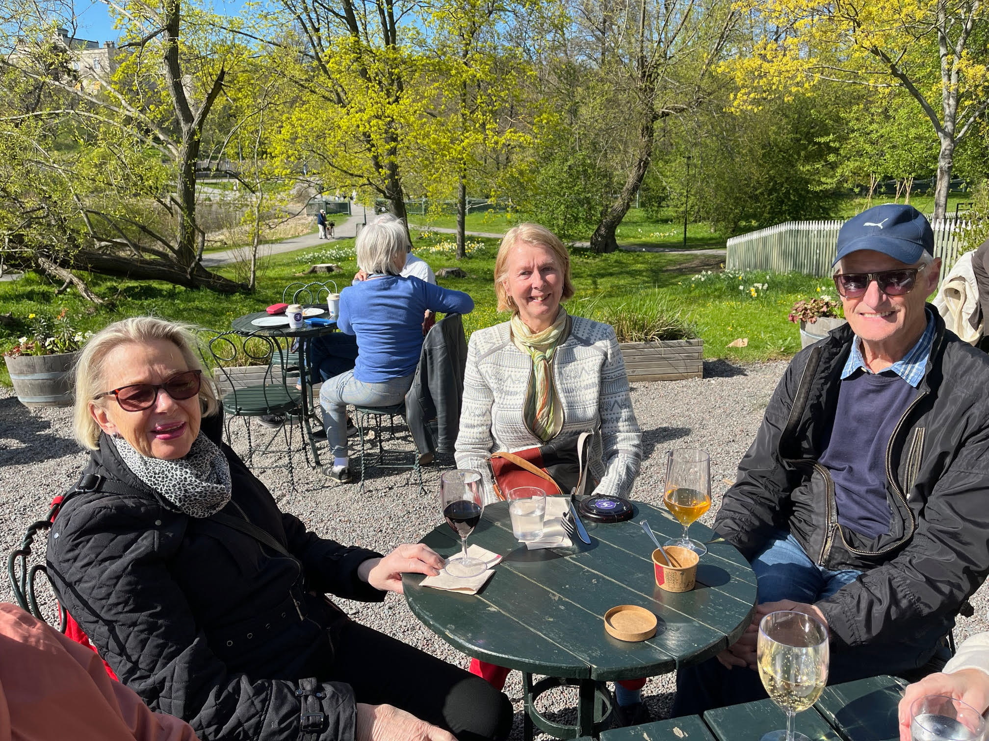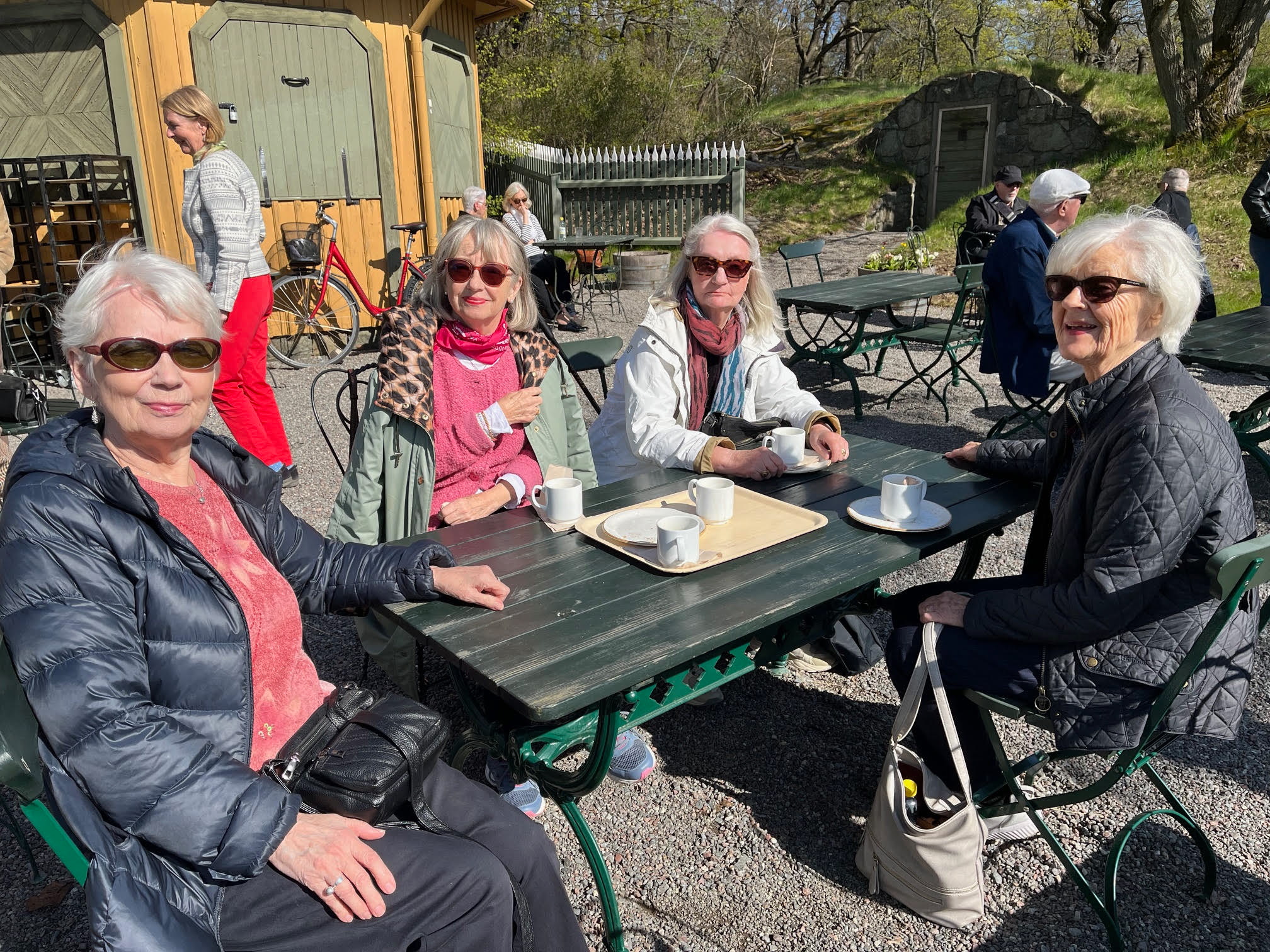Efter guidningen kunde vi i egen takt gå runt i utställningen, titta och njuta även av den vackra omgivningen. De flesta av oss passade på att ta något litet att äta (rekommenderar våffla med hjortronsylt!) och dricka i härligt solsken. Vi fick sedan höra att det hade varit drottningbesök, drottning Silvia och Danmarks drottning Mary hade varit och sett utställningen tidigare på förmiddagen. Vi missade dock dessa kungligheter, men fick se kunglig kortege vid Kungsträdgården när vi var på hemväg. Vi var väldigt nöjda efter en fin dag med spännande intryck.
