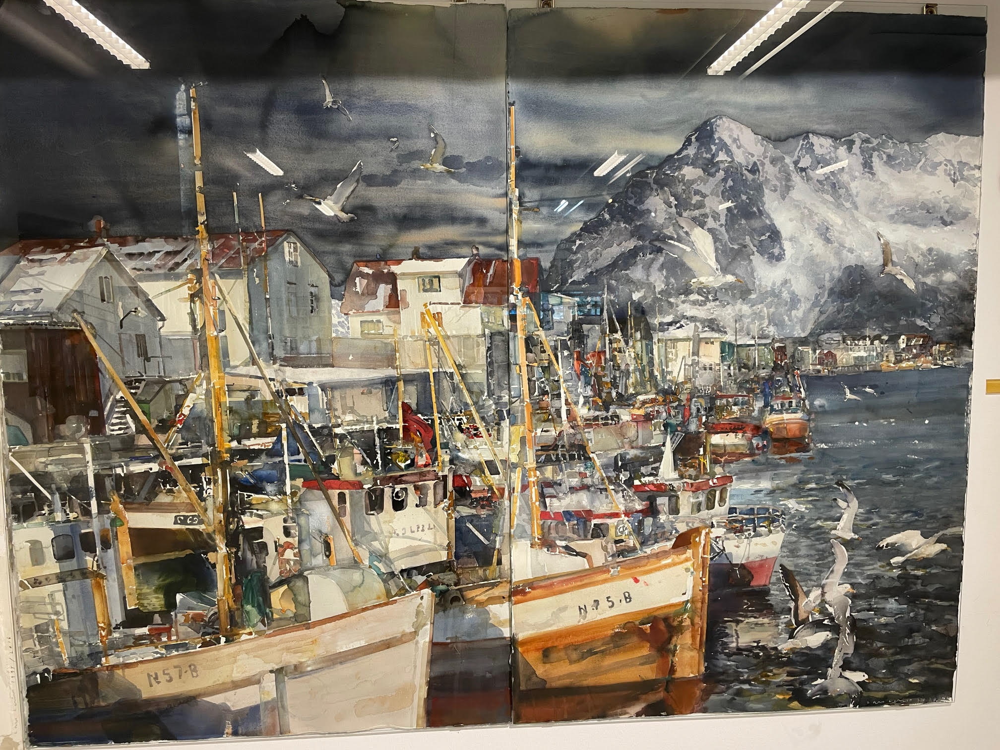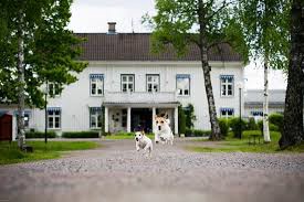 Vårt sista museibesök blev Lars Lerins - Sandgrund i Karlstad. Vilka underbara tavlor han målar. Härliga vyer, starka färger med ett enormt djup i dem. Lars hade även samlat på tavlor med guldram där motivet var hundar. I ett av rummen fanns dessa lyckliga jyckar. Vi njöt för fullt av Lars tavlor. Så bra som han är!