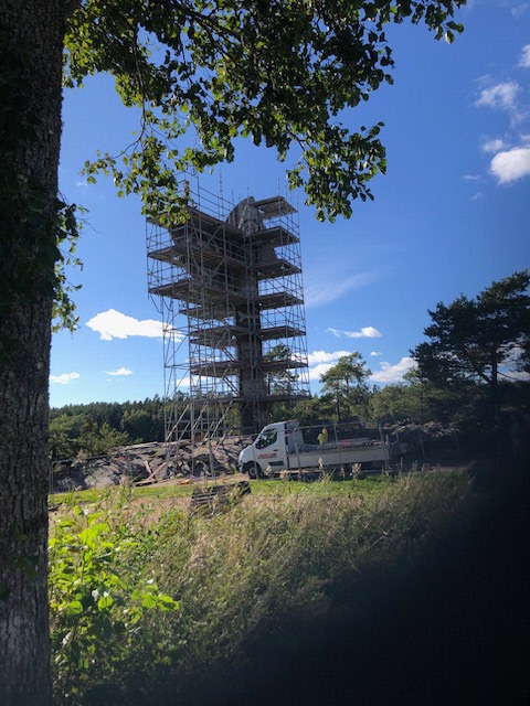 Picasso statyn i Kristinehamn var vårt nästa stopp. Tyvärr var den inpackad av byggnadsställningar då den skulle renoveras. Som tur var fanns informationstavlor att läsa på för oss. Statyn restes den 25 juni 1965 men Picasso såg den aldrig själv på platsen.