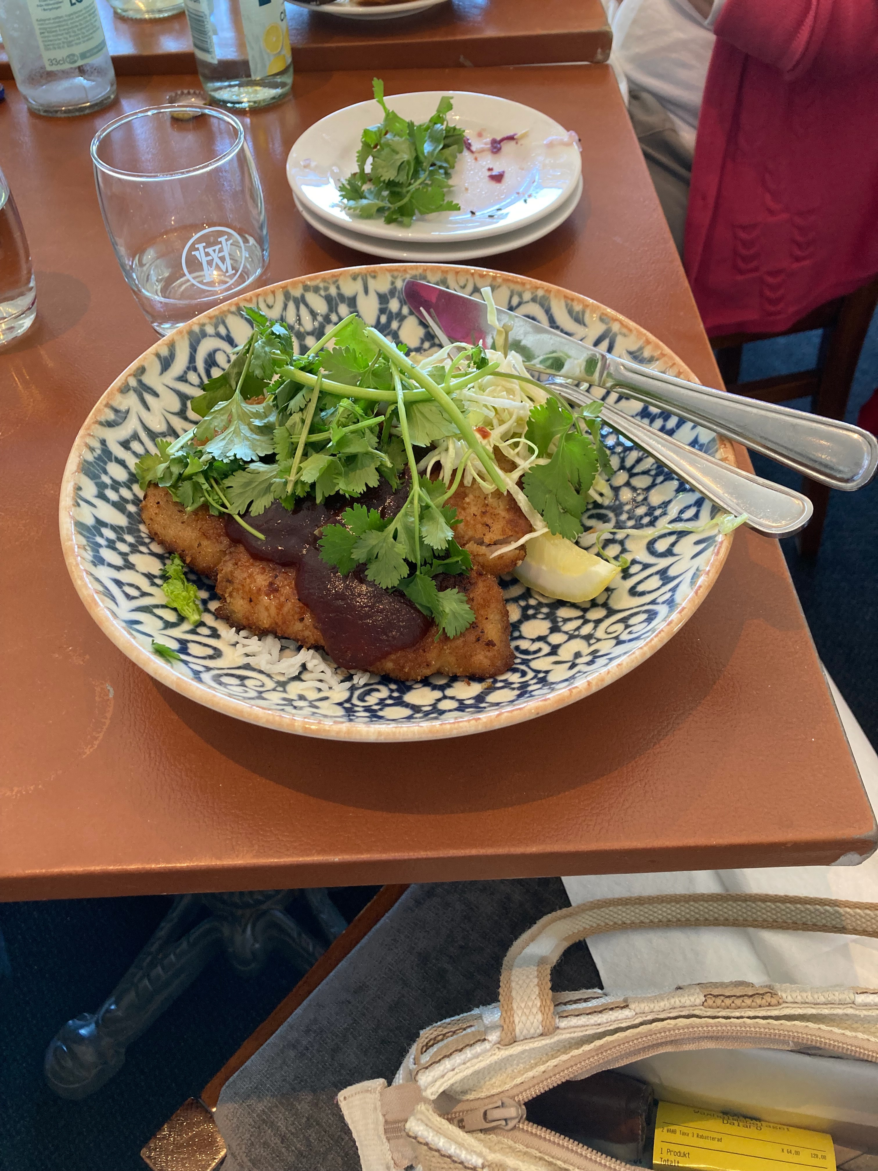 Dagens rätt hette Tonkatu. Ingen kände till den, men den visade sig inte vara så märkvärdig som det lät. Panerad schnitzel med en särskild soyasås, tonkatun. Många var nyfikna på den rätten, men några tog istället en traditionell strömmingsflundra med mos och lingon.