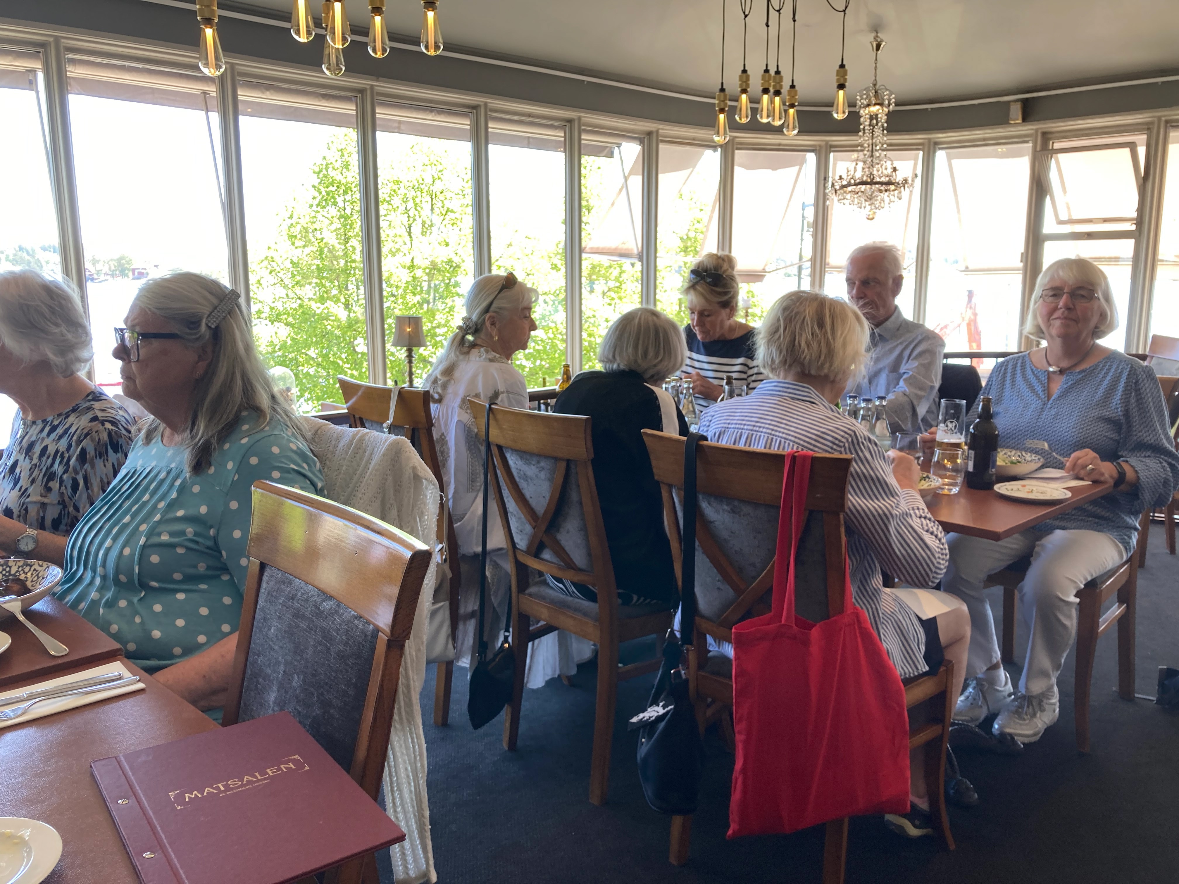 I klarblå himmel, sol och lite sval vind var vi 17 personer (endast 3 herrar) som tog skärgårdsbåten för att äta lunch i Vaxholm. Väl framme gick vi bara rakt över gatan till Vaxholms hotell. Där hade vi reserverade bord.