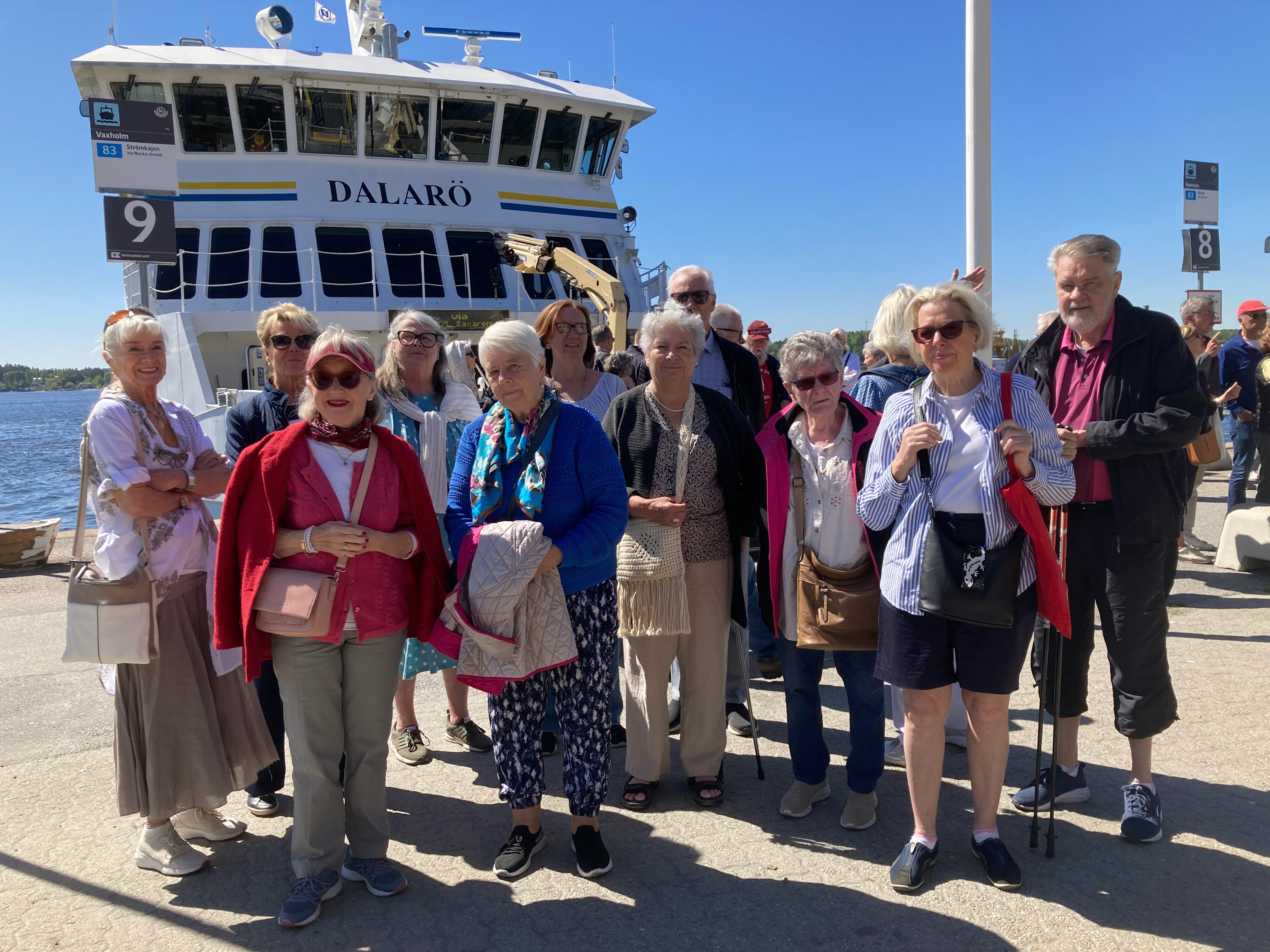 Sen passade det bra med promenad i ett fint Vaxholm, utan turistbutiker. Några tog SL-båten tillbaka direkt, men de flesta promenerade i lite blandade grupper. Endast någon enstaka orkade med den ”berömda” glassen. En skön stund med näsan mot solen var underbart i väntan på båten.