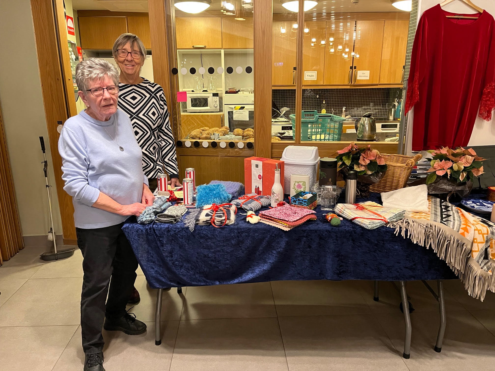 Efter skönsången flyttade vi till uppdukade bord där bjöds på kaffe och jättegoda smörgåsar. Därefter vidtog den sedvanliga lotteridragningen som den här gången hade ett mycket rikligt ”prisbord” med allt möjligt exempelvis teaterbiljetter till Bristol teatern, hudvårdsprodukter, julservetter, juleljus och kläder.