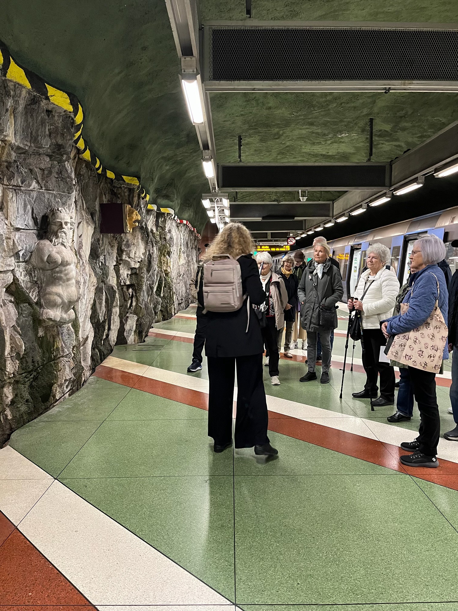 Vi var en nyfiken grupp som samlades i Sundbyberg för att få en ”Konståkning”i tunnelbanan med hjälp av guiden Victoria Sandels.