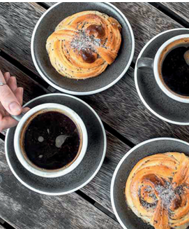 Kaffe och bulle ingår, men för den som så önskar finns vin, öl m.m. att köpa.