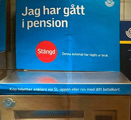 Det är med bestörtning vi ser den kampanj som SL just nu driver på sina stationer och hållplatser – avstängda biljettautomater ropar: ”Jag har gått i pension”.